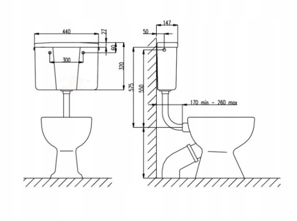 (шаблон для установки бачка с расстоянием между отверстиями включен)