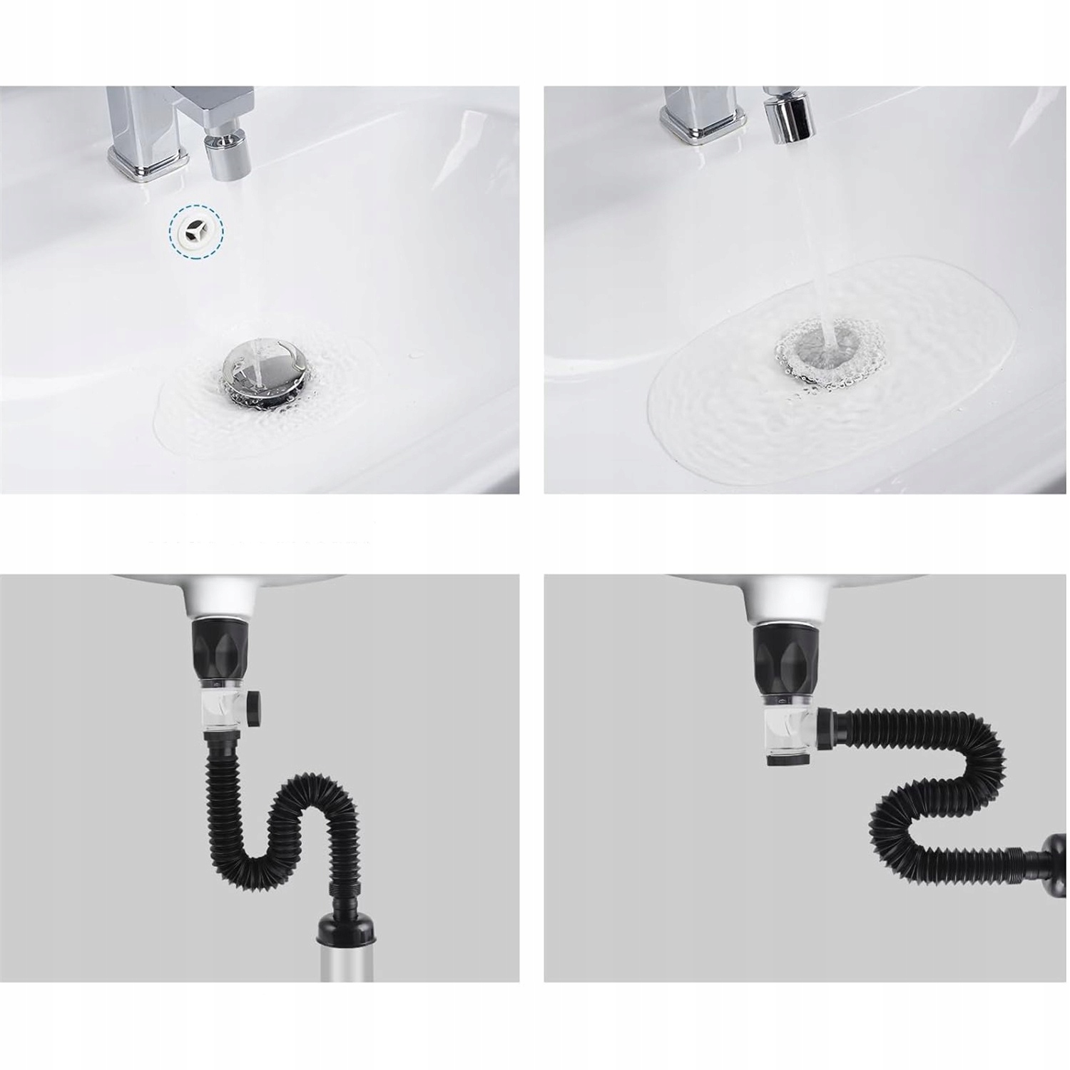 Слив для раковины подходит для сливных отверстий диаметром 1,25 или 1,5 дюйма и состоит из заглушки из нержавеющей стали, сливного клапана и гибкой складной сливной трубы. Сливную трубу можно складывать и удлинять по мере необходимости для установки узких раковин длиной 300-1000 мм, а также использовать как для безпроточных, так и для переливных раковин.