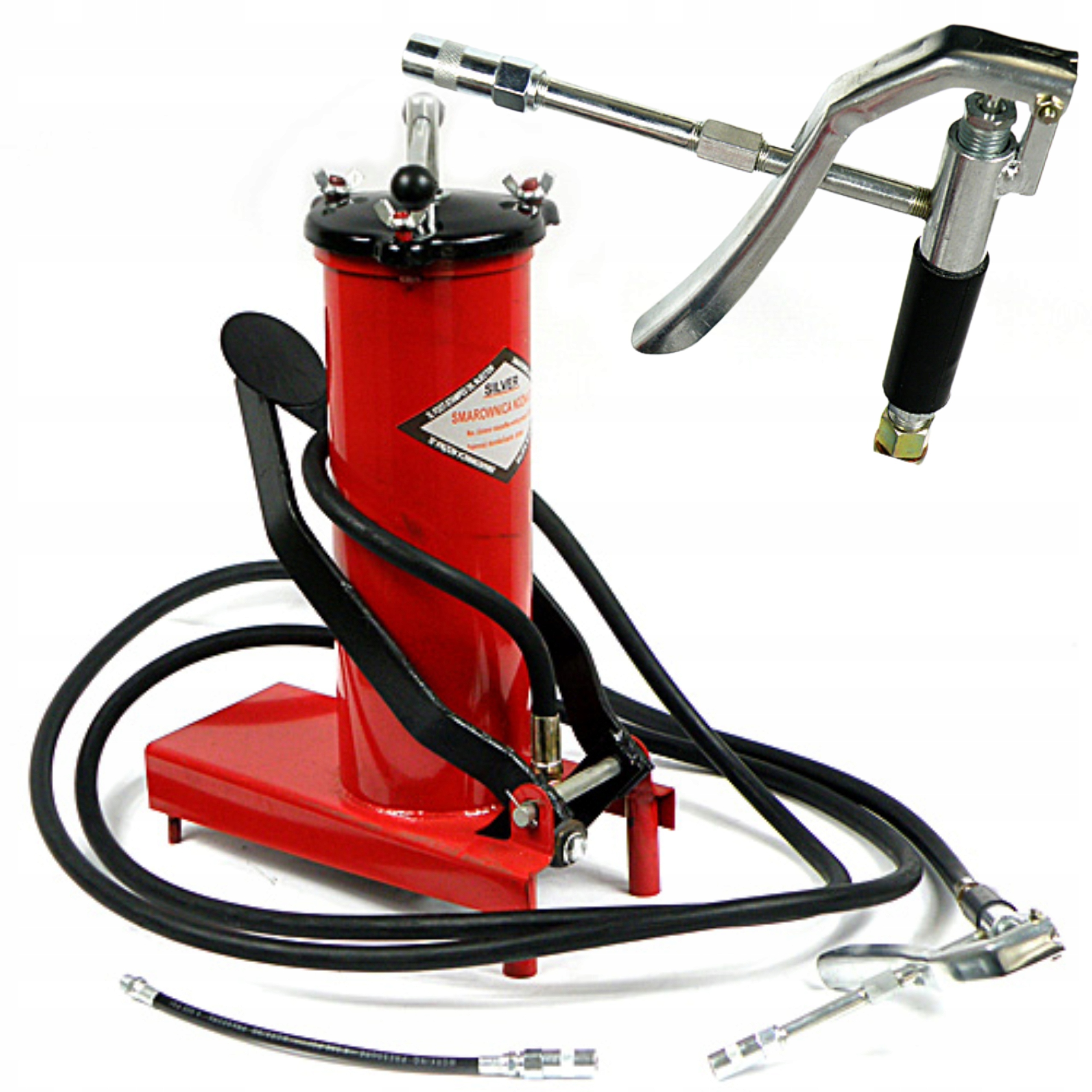 Инструмент, предназначенный для смазки машин и устройств с системой смазки в виде каламитов. Смазочный шприц изготовлен из высококачественных материалов и оснащен стандартными универсальными насадками, что обеспечивает его широкое применение в сельском хозяйстве, промышленности и автосервисах. Благодаря колесам передвигаться с инструментом чрезвычайно легко и удобно.