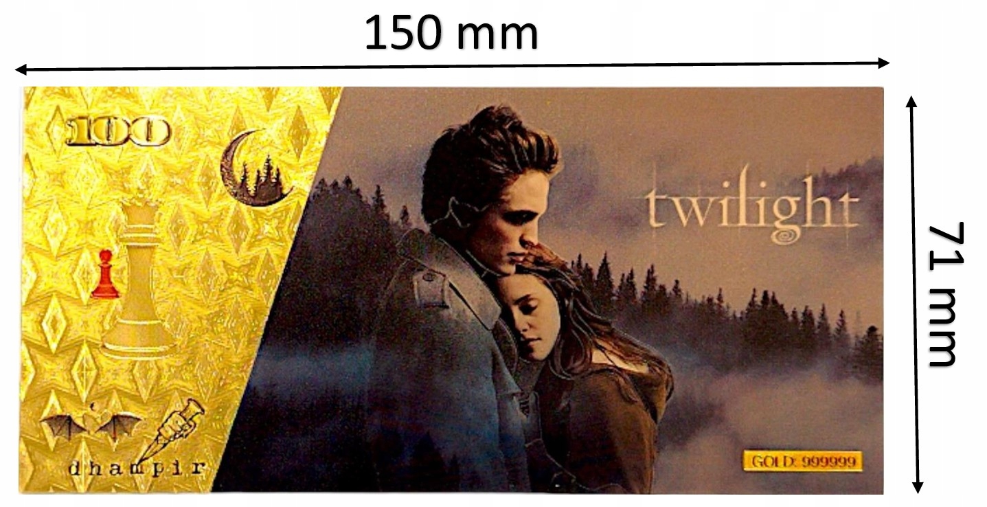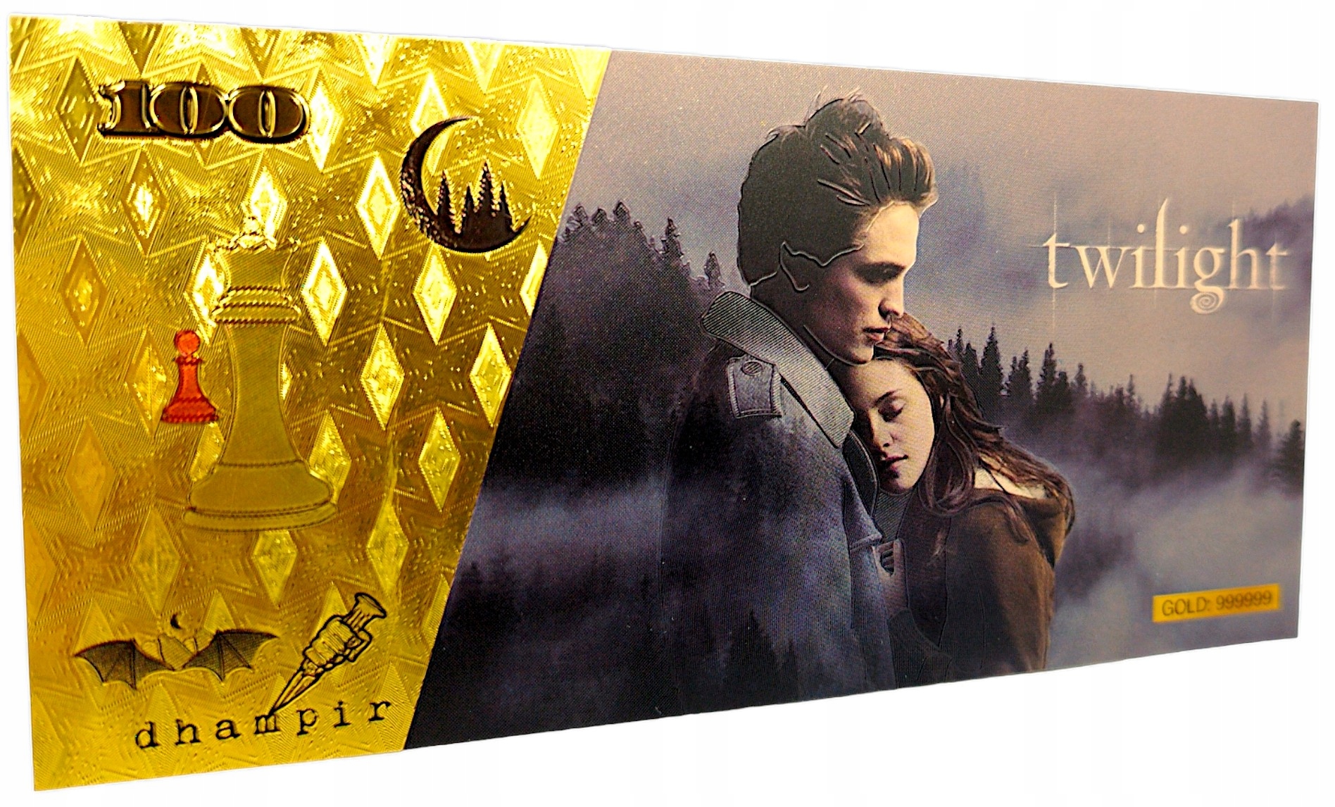 Если вы поклонник саги «Сумерки» и цените уникальные предметы коллекционирования, это предложение именно для вас! Представляем уникальную, позолоченную банкноту, которая перенесет вас в волшебный мир Беллы, Эдварда и вампиров.