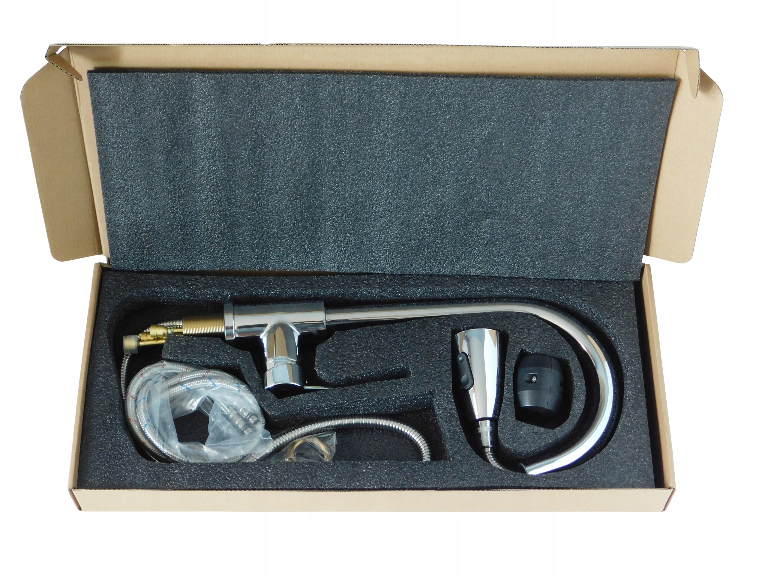 Красивый, массивный поворотный кухонный смеситель, хромированный, с выдвижным изливом