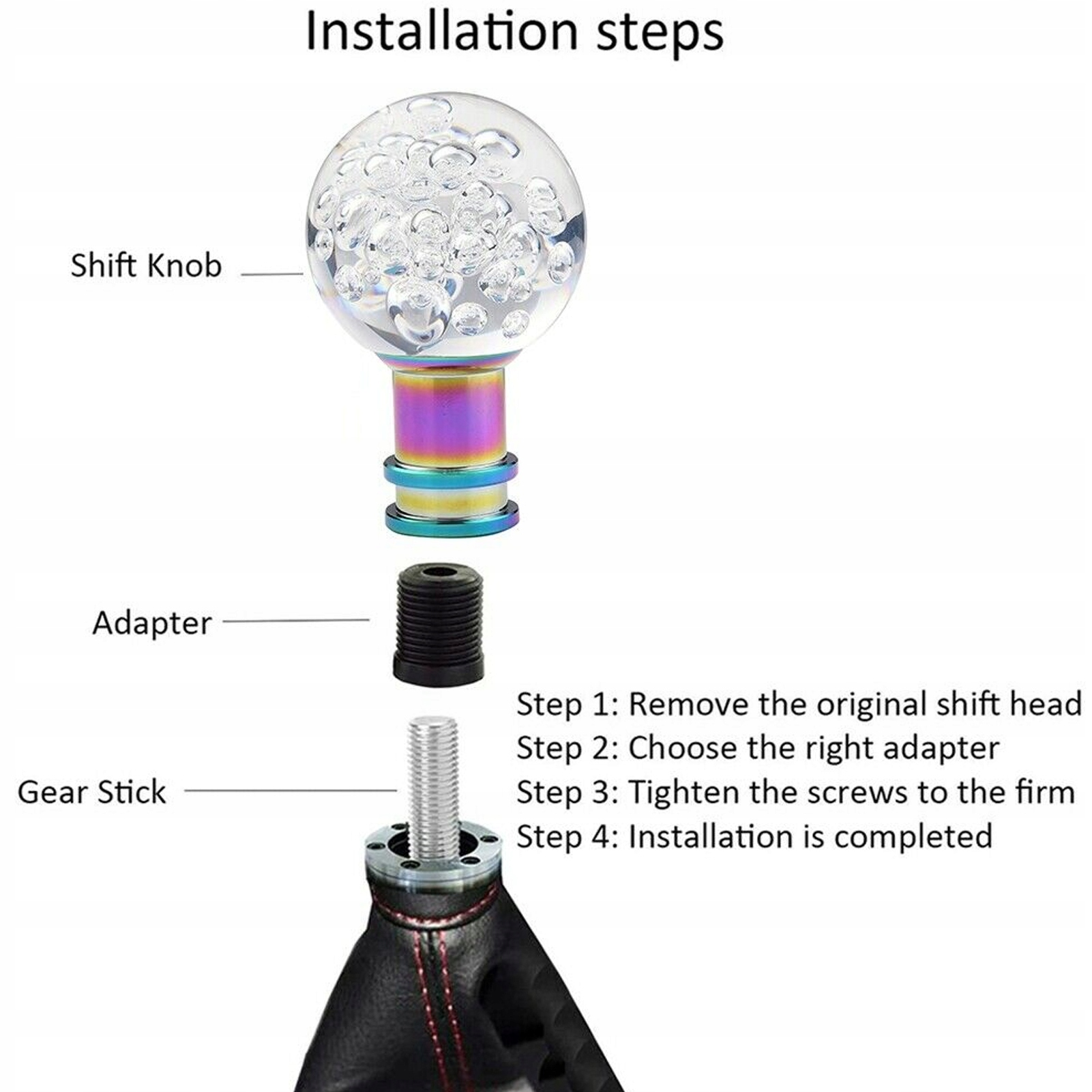 1, разработанные в стиле мяча, обеспечивает более быстрый и более плавный сдвиг передачи и улучшает опыт вождения и чувство манипуляции. 2. Автоматическая ручка переключения передач оснащена 3 пластиковыми адаптерами (8 мм/0,31 дюйма, 10 мм/0,39 дюйма, 12 мм/0,47 дюйма) облегчает установку. Диаметр монтажного отверстия составляет 15 мм/0,59 дюйма. 3, уникальный дизайн, отличная замена старого или поврежденного на вторичном рынке. Улучшите свой комфорт вождения и внешний вид внутренней части автомобиля. 4, Ручка с переключением передач удобна для прикосновения, устойчивой к износу, выглядит очень красиво и идеально подходит для оригинального автомобиля. 5, использование долговечного и высококачественного акрила. Легкая установка, не требует модификации, резки или бурения.