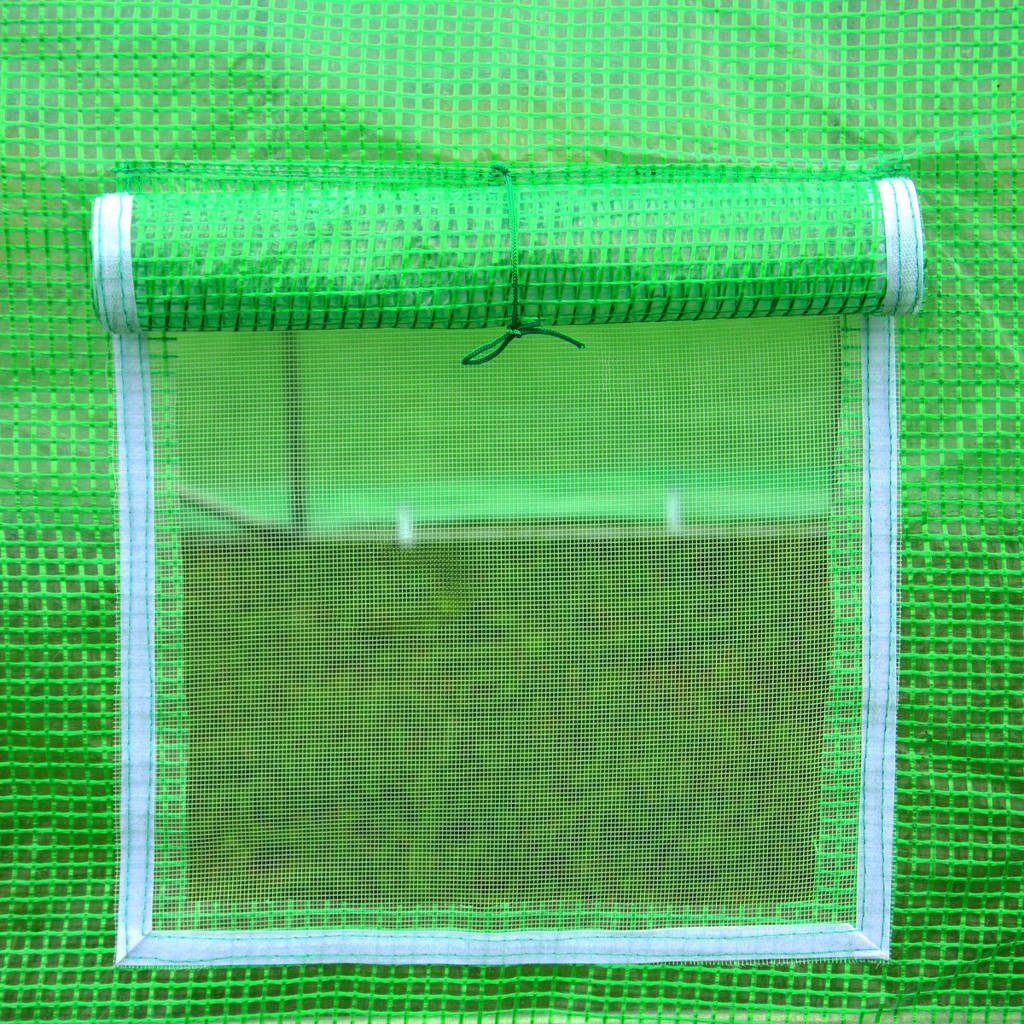 Благодаря сворачивающимся окнам и дверям в туннеле обеспечивается циркуляция воздуха, подходящая для растений рост. Кроме того, москитная сетка защищает внутреннюю часть от насекомых и загрязнения почвы семенами, переносимыми ветром.