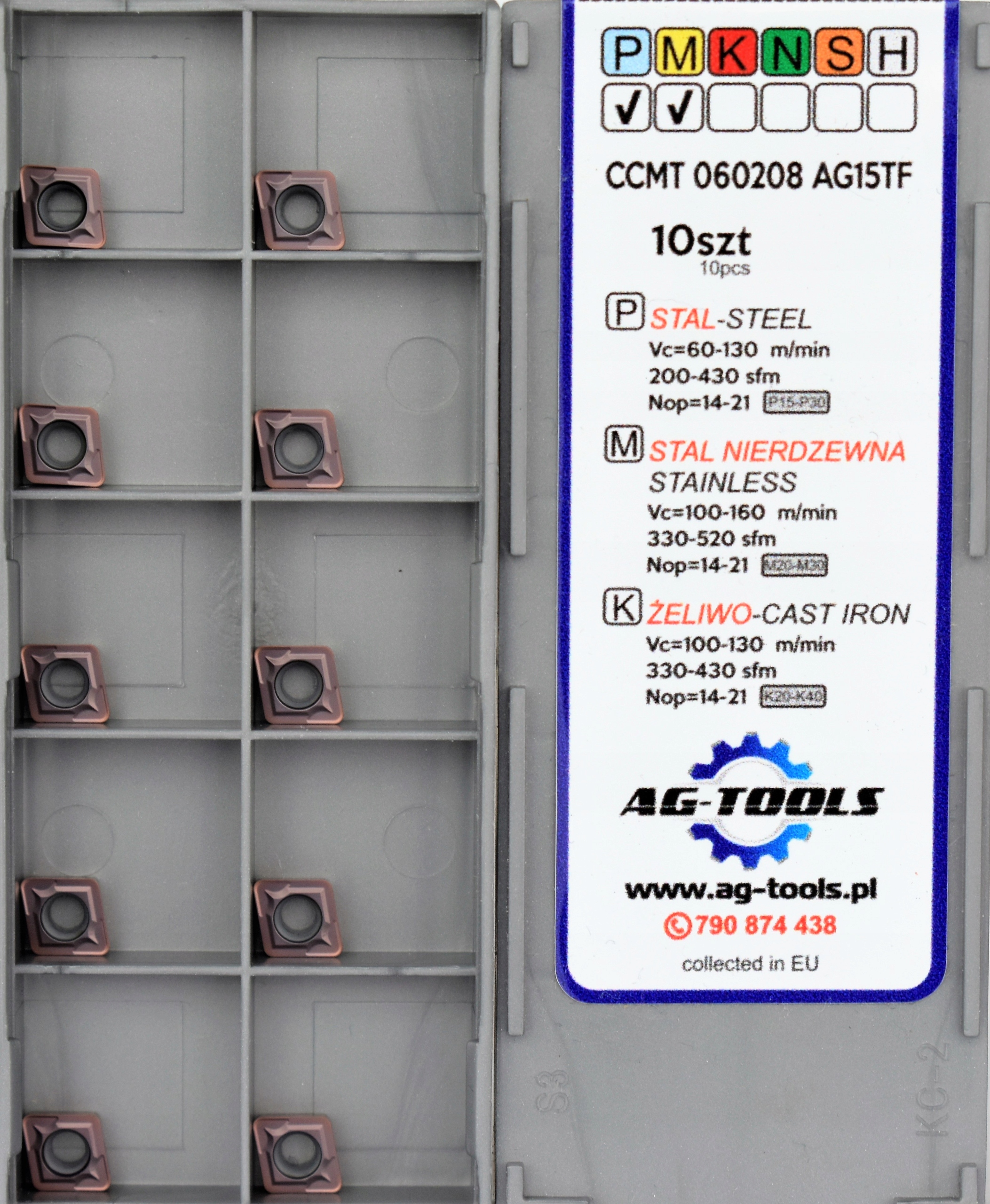 CCMT 060208 AG15TF МНОГОКРАТНАЯ ПЛАСТИНА ДЛЯ ТОЧКИ СТАЛИ, НЕРЖАВЕЮЩЕЙ СТАЛИ И ЧУГУНА