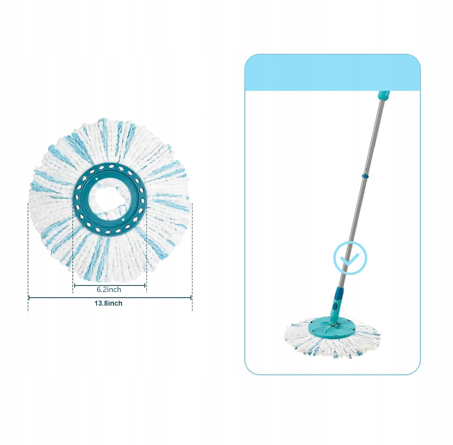 💡💡💡 【Универсальность】 Вращающиеся швабры из микрофибры используются для чистки гладких поверхностей, таких как ламинат, деревянные полы, керамическая плитка, мраморные полы и другие твердые полы с герметичным покрытием. Хотите ли вы убрать кухню, спальню или ванную комнату, наши высокоэффективные сменные швабры с легкостью справятся с этой задачей.