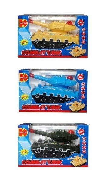 Красочный бак для детей с вращающейся пушкой. Он сияет с красочным светом, издает звуки. Игрушка работает на батареях АА. Батареи не в игрушке. Продукт поставляется в нескольких цветовых версиях, выбранных случайным образом. Цена на один кусок. Игрушка упакована в картонную упаковку с прозрачным окном. Танк, предназначенный для детей от 3 лет.