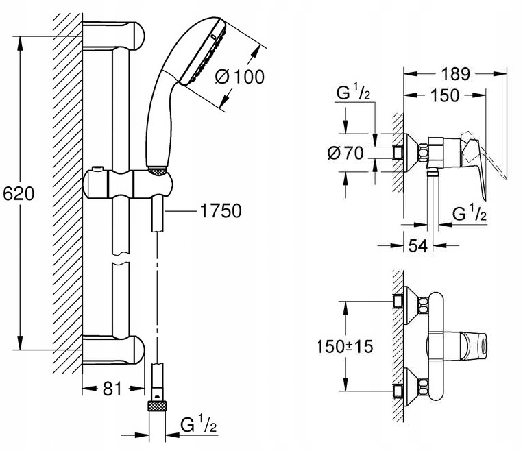 МОНТАЖНЫЕ РУЧКИ: расстояние 62 см