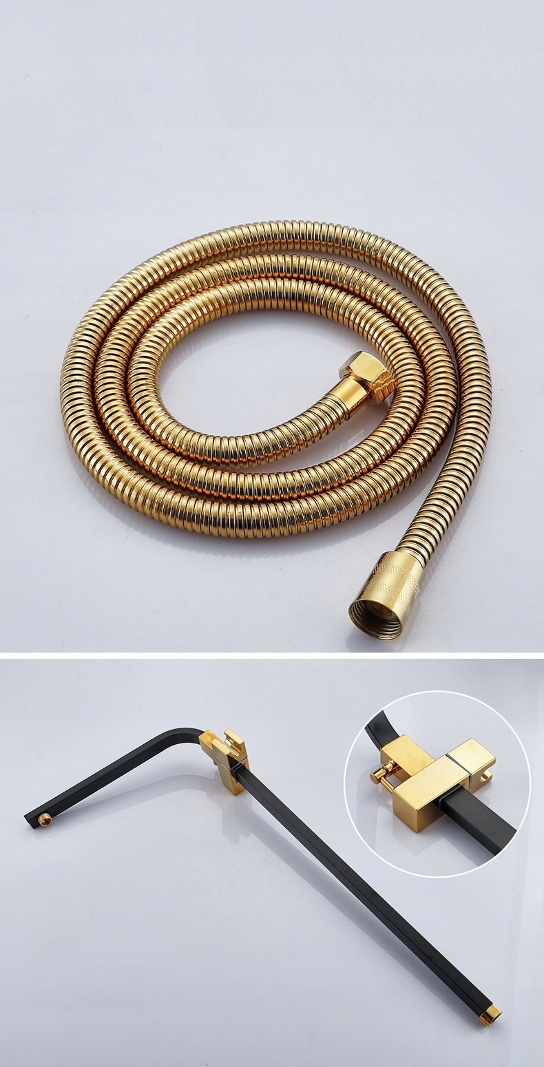 Стильный и современный душевой набор в красивом матовом черном цвете с золотой фурнитурой