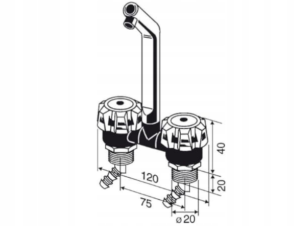 Смеситель с поворотным изливом и микропереключателем известной фирмы Reich. Точно контролирует количество воды. Излив имеет две ручки для подачи горячей и холодной воды. В стяжке необходимы два крепежных отверстия диаметром 2 см.