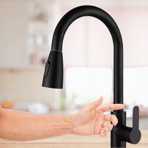 МАТОВЫЙ ЧЕРНЫЙ КУХОННЫЙ смеситель, ВЫСОКОВРАЩАЮЩИЙСЯ, С ВЫДВИЖНЫМ ИЗЛИКОМ ПРЕМИУМ