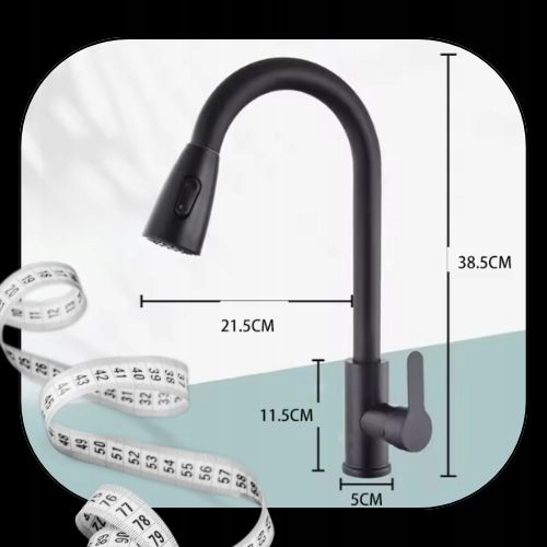 ВЫСОКИЙ МАТОВЫЙ КУХОННЫЙ Смеситель С ВЫДВИЖНЫМ ПОВОРОТНЫМ ИЗЛИКОМ ЧЕРНЫЙ PRO