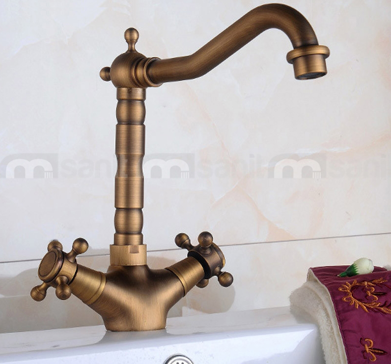 Смеситель для кухни в стиле ретро, СТАРОЕ ЗОЛОТО / ЛАТУНЬ