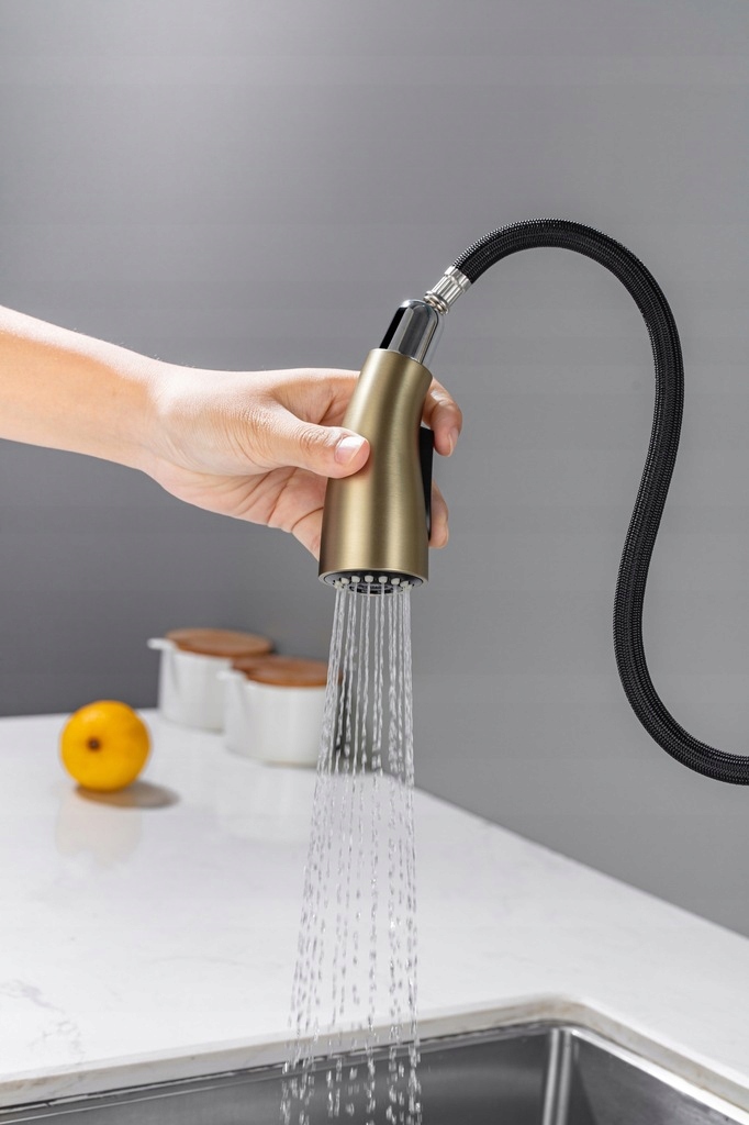 Красивый смеситель для кухни матового золота с выдвижным изливом - Gold Mat WW
