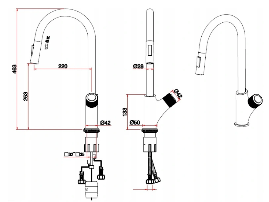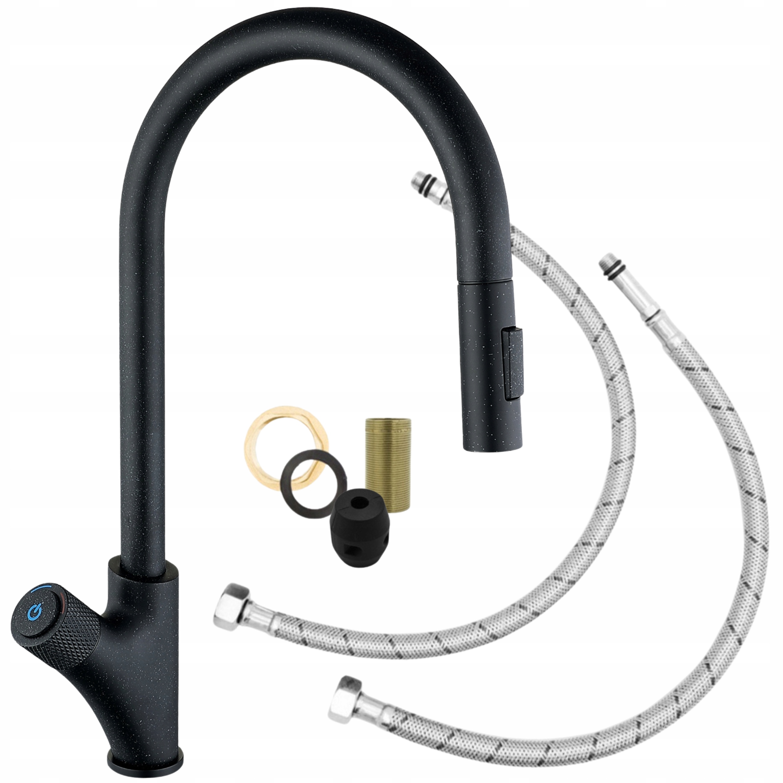 Смеситель для кухни с ВЫДВИЖНЫМ изливом ЧЕРНЫЙ смеситель для мойки ГИБКИЙ смеситель