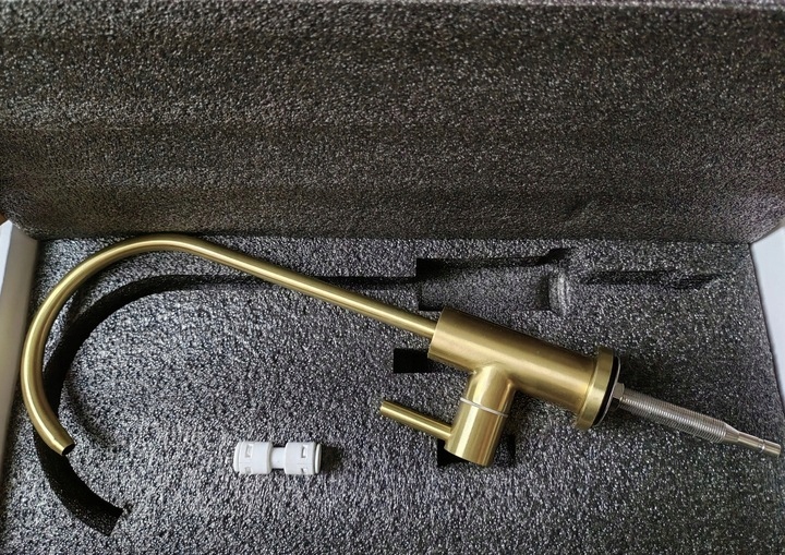 АККУМУЛЯТОР, ДОЗАТОР И КРАН В ОДНОМ ЦВЕТЕ И ОТТЕНКЕ ЗОЛОТА.