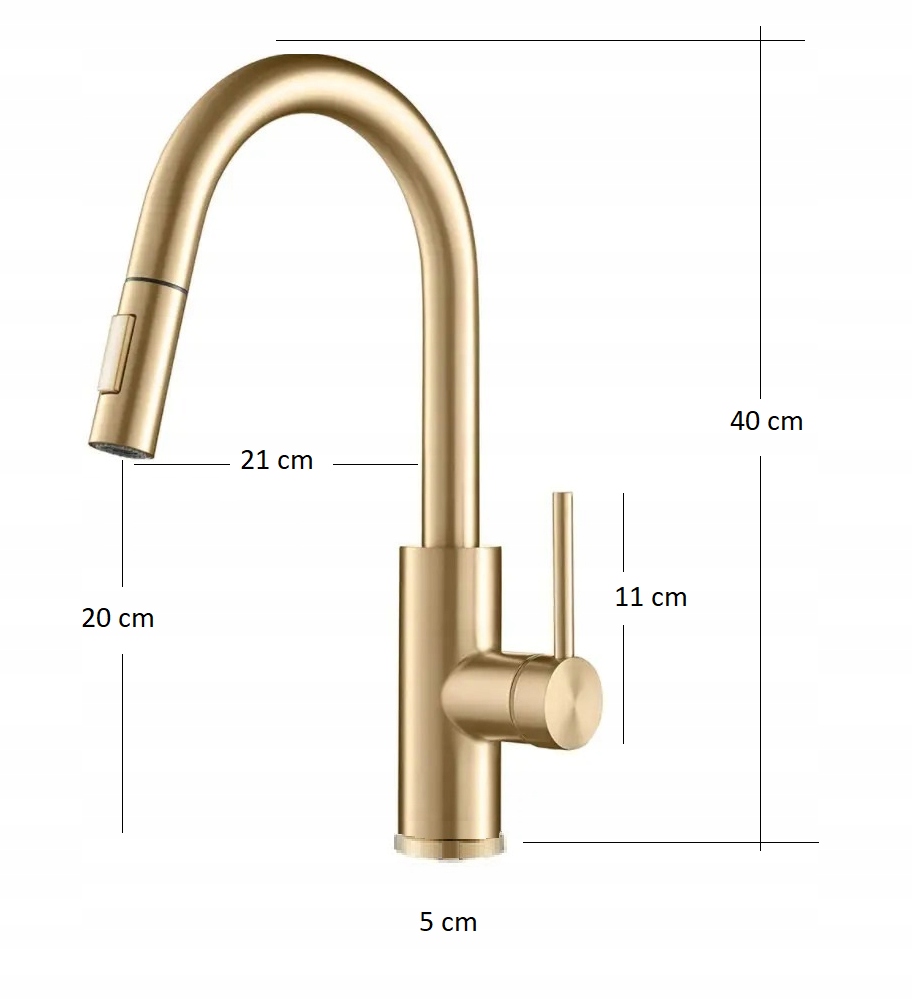 Змішувач для кухні золото Сталевий вилив WW + Комплект