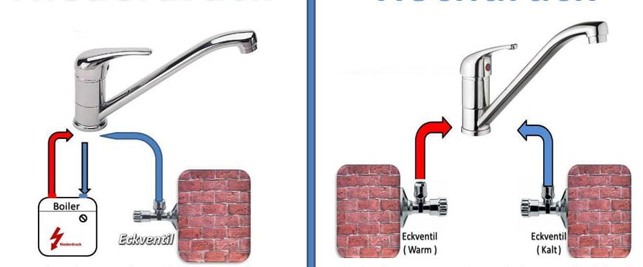 Смеситель для умывальника для безнапорных водонагревателей - проточный и емкостный, ЧЕРНЫЙ/БЕЛЫЙ