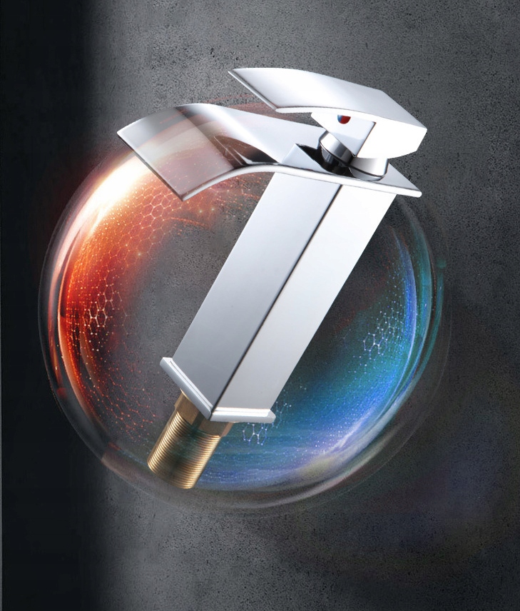 Это вертикальный смеситель для умывальника с водопадом, предназначенный для современных ванных комнат. Широкий, слегка изогнутый излив создает эффект водопада, который идеально подходит для любого типа умывальника. Небольшой изгиб кончика означает, что, несмотря на большой и широкий радиус действия, вода не разбрызгивается. Кроме того, материал крана — латунь.