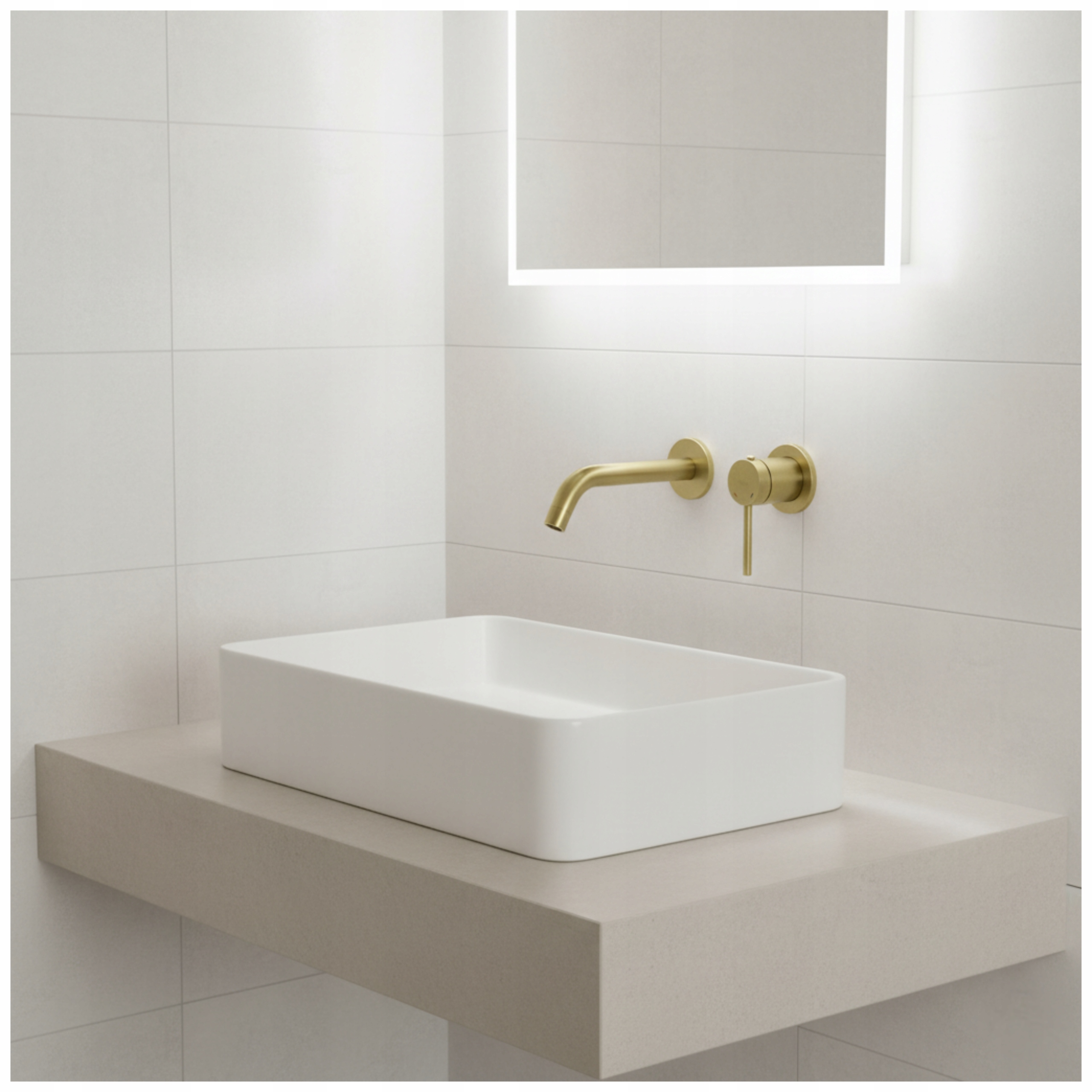 Смеситель для умывальника скрытого монтажа Rea Clif, матовая латунь, золотой излив