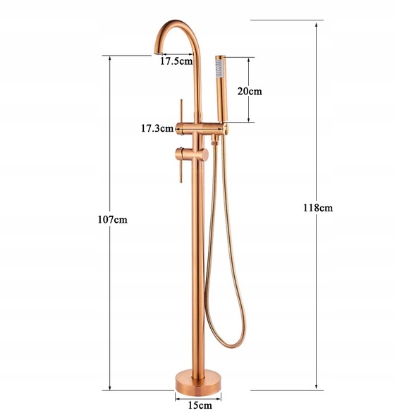 НАБОР ИЗ ОТДЕЛЬНОСТОЯЩЕГО НАПОЛЬНОГО СМЕСИТЕЛЯ ДЛЯ ВАННЫ И ДУШЕВОГО НАБОРА ИЗ МАТОВОГО РОЗОВОГО ЗОЛОТА