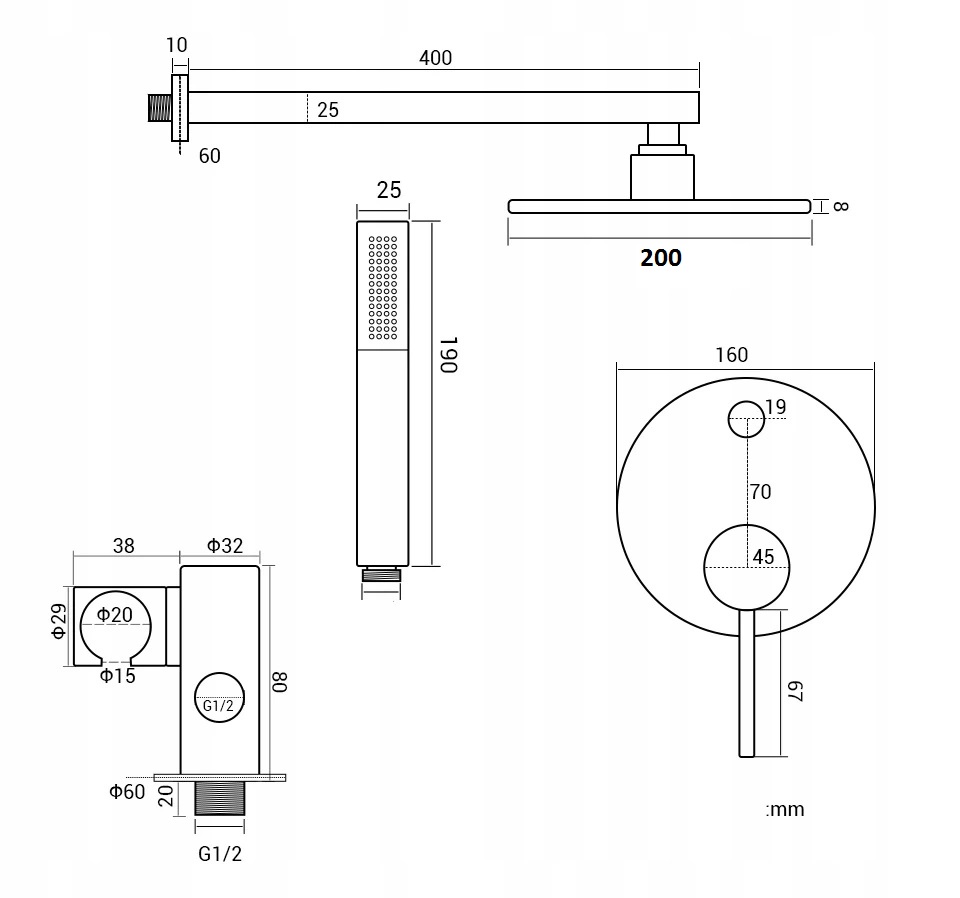 - Душевой набор из латуни.