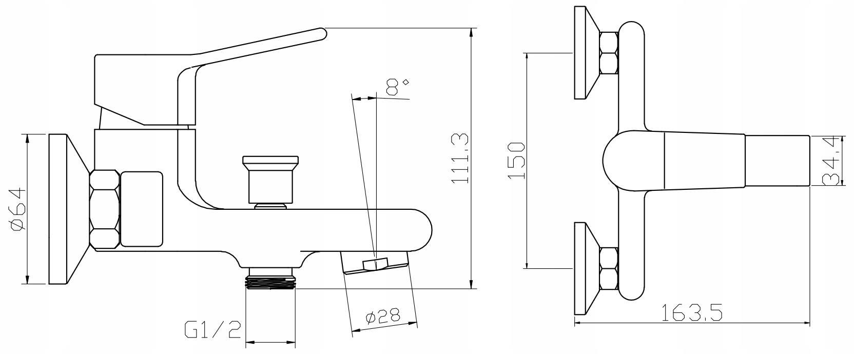 Смеситель для ванны 15х11 см настенный ПРОСТОЙ ХРОМ