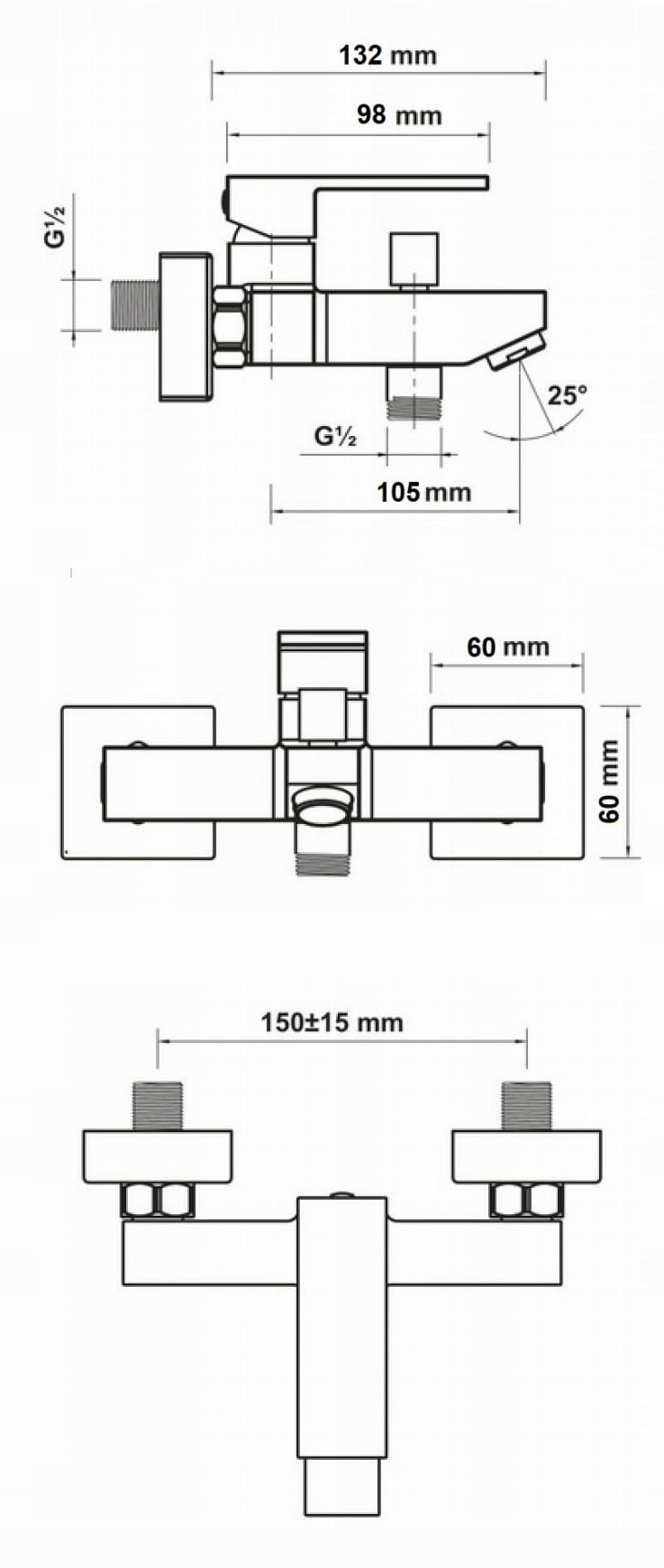 Черный переключатель предназначен для душевых колонн, в которые можно установить детали с резьбой 3/4 x 1/2 дюйма. Габариты устройства также имеют значение. В данном случае высота 65 мм, ширина 65 мм и глубина 28 мм.
