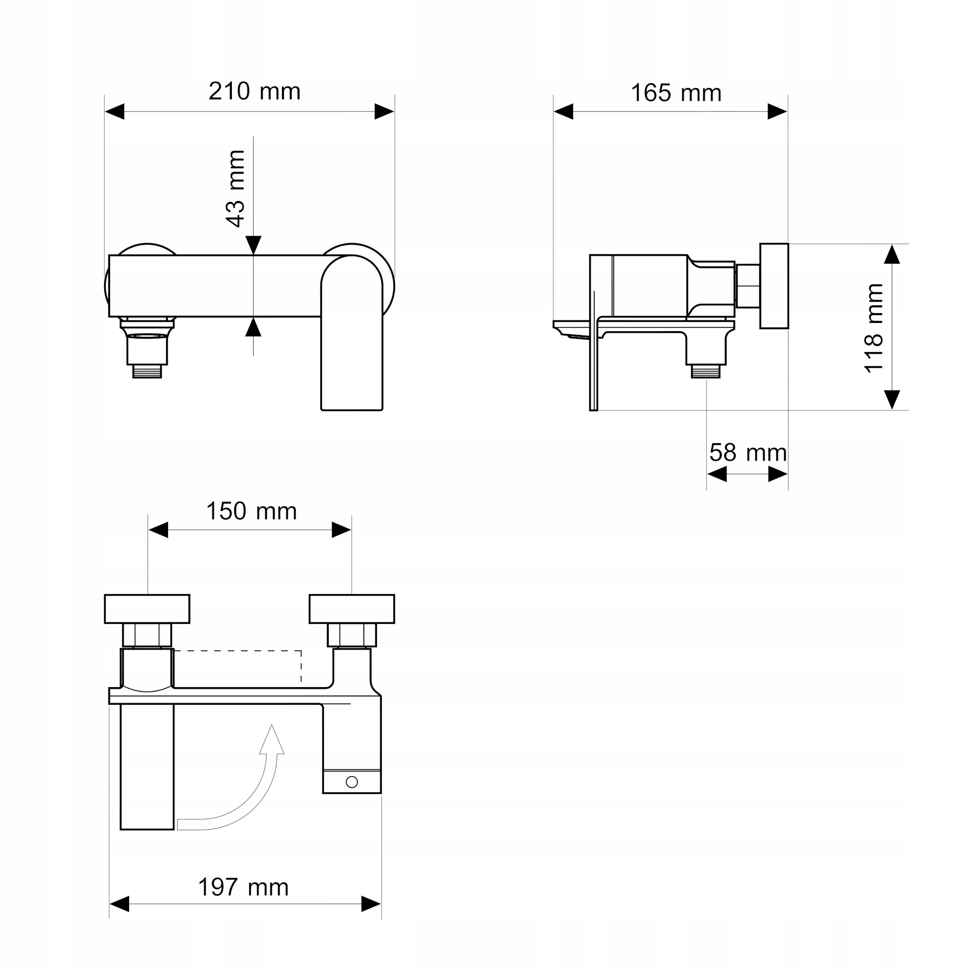 - Длина излива: 165 мм