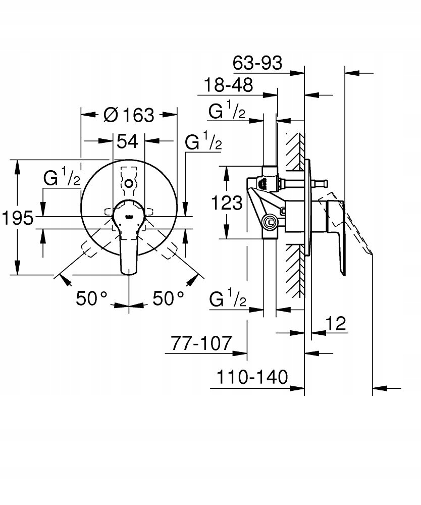ЗМІШУВАЧ ДЛЯ ВАННИ ПРИХованого монтажу GROHE START
