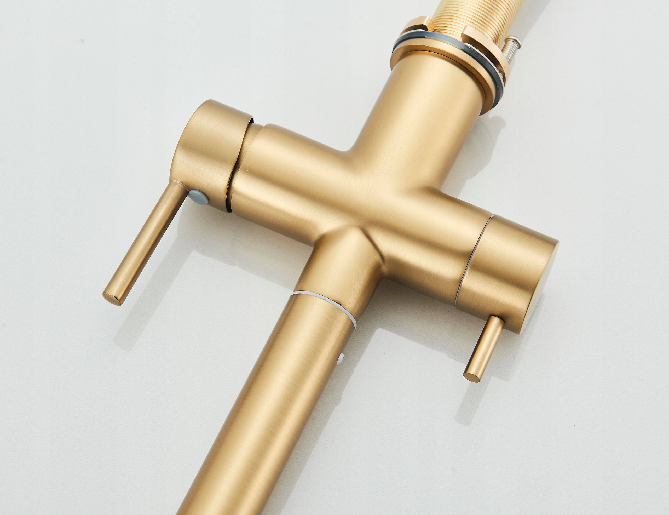 ТРЕХХОДОВОЙ КУХОННЫЙ КРАН, ФИЛЬТР, ВЫДВИЖНОЙ НОСИК, ЗОЛОТО