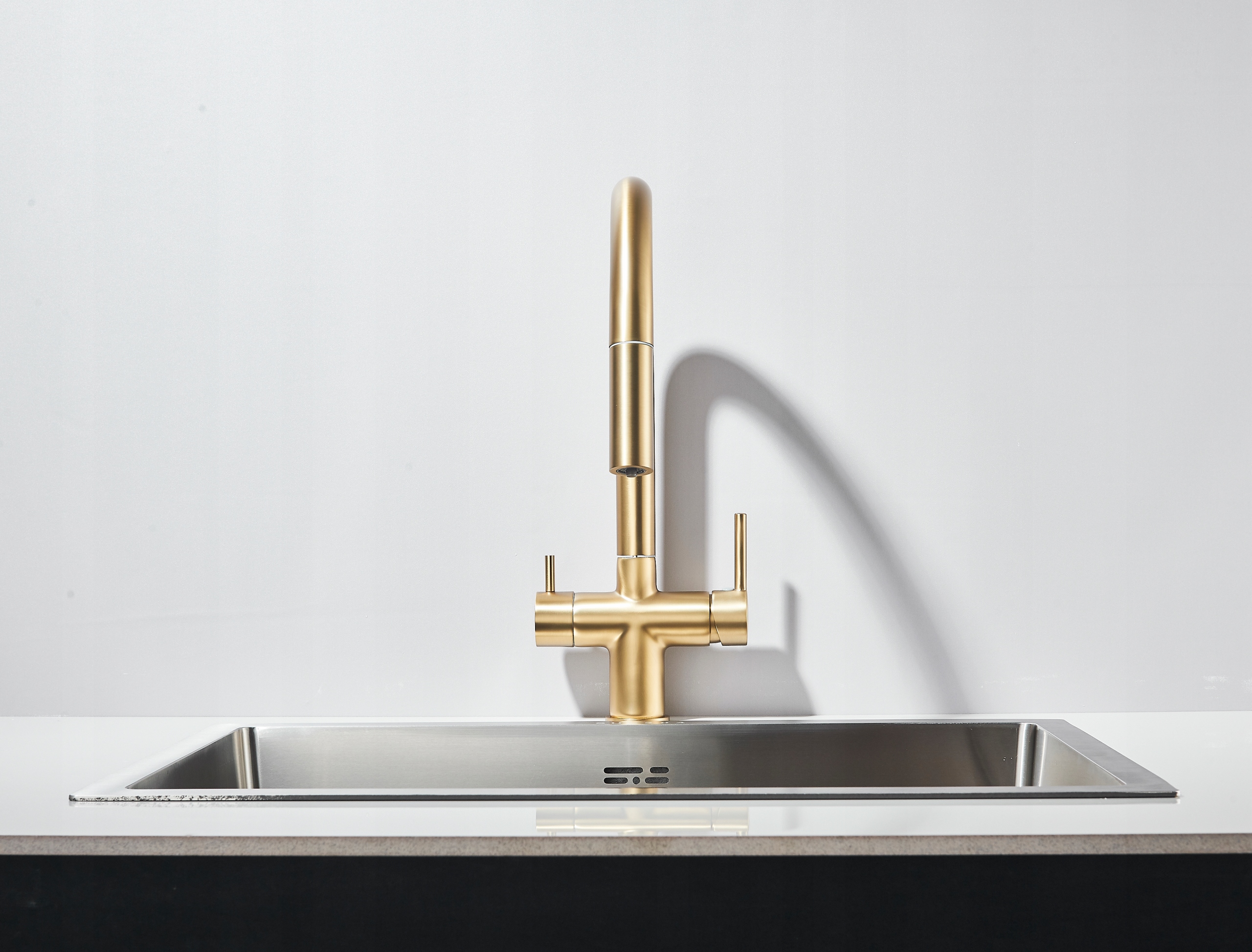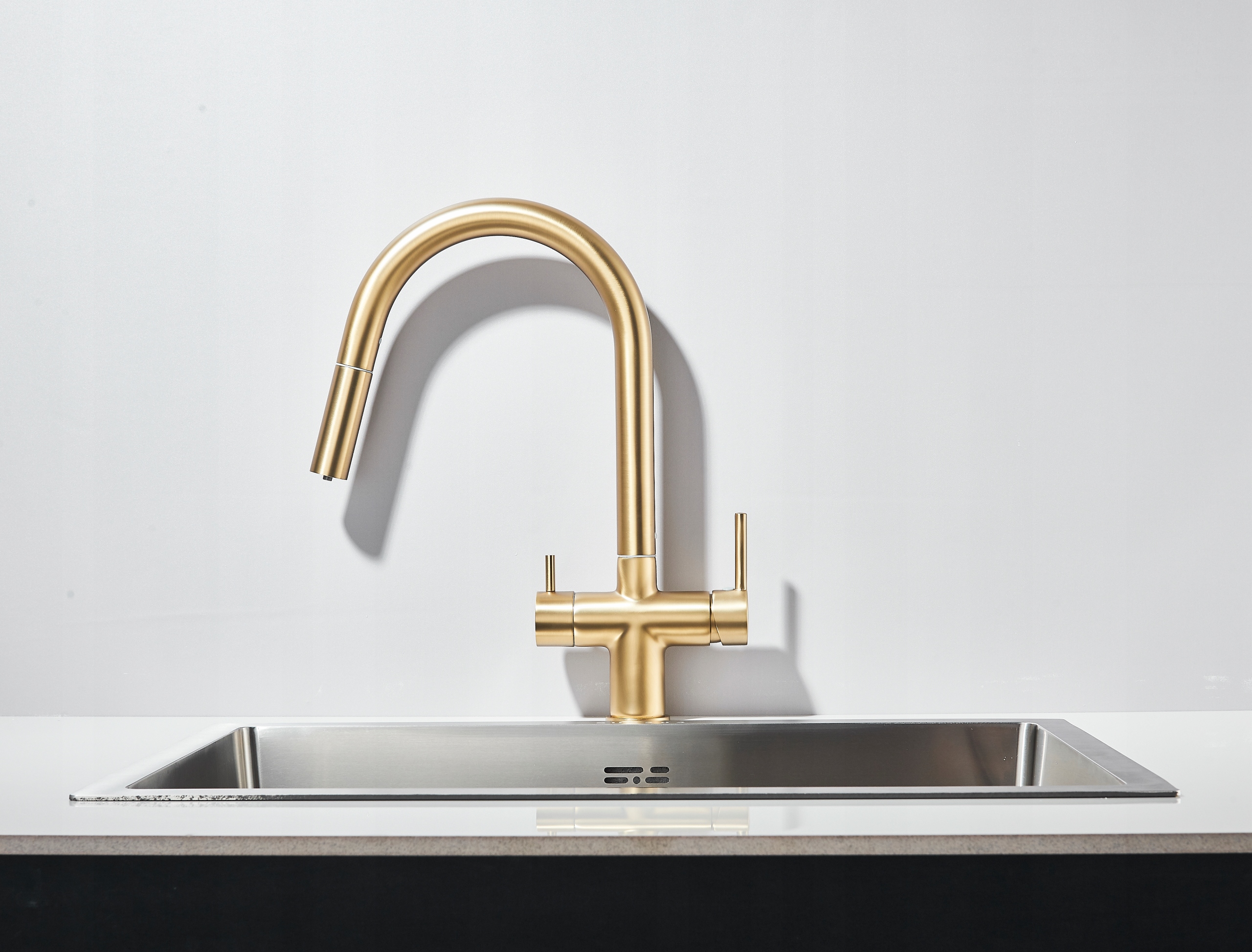 Матовое золото | Выдвижной излив | Фильтрованная вода