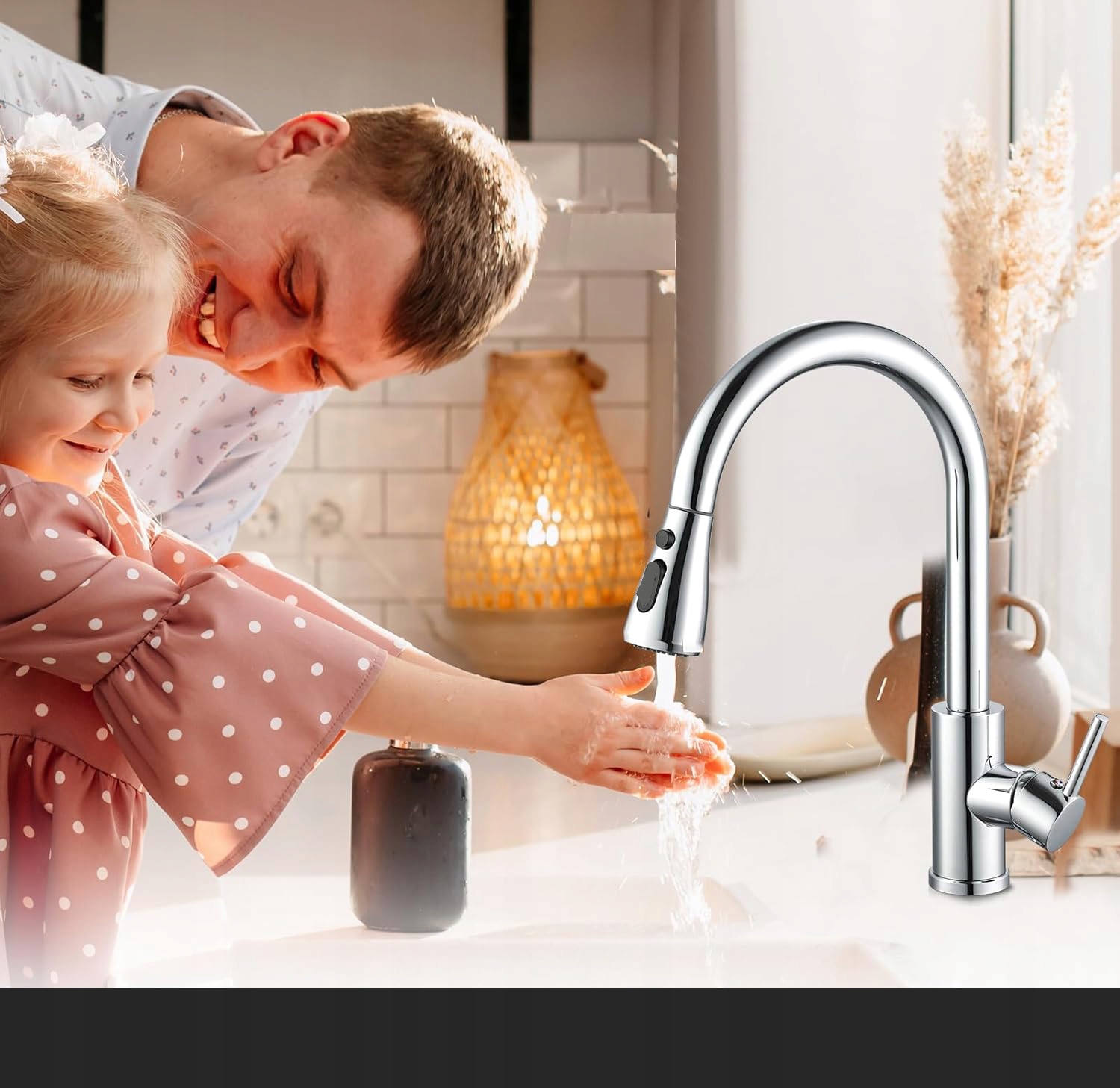 💡💡【Выдвижная конструкция】Этот кухонный смеситель оснащен поворотной на 360 градусов выдвижной распылительной головкой, что обеспечивает большее рабочее пространство для удовлетворения различных потребностей пользователей.