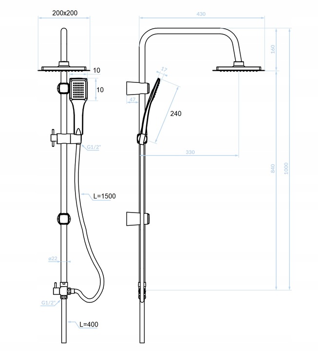 Змішувач POLAND + душовий гарнітур RAIN квадратний