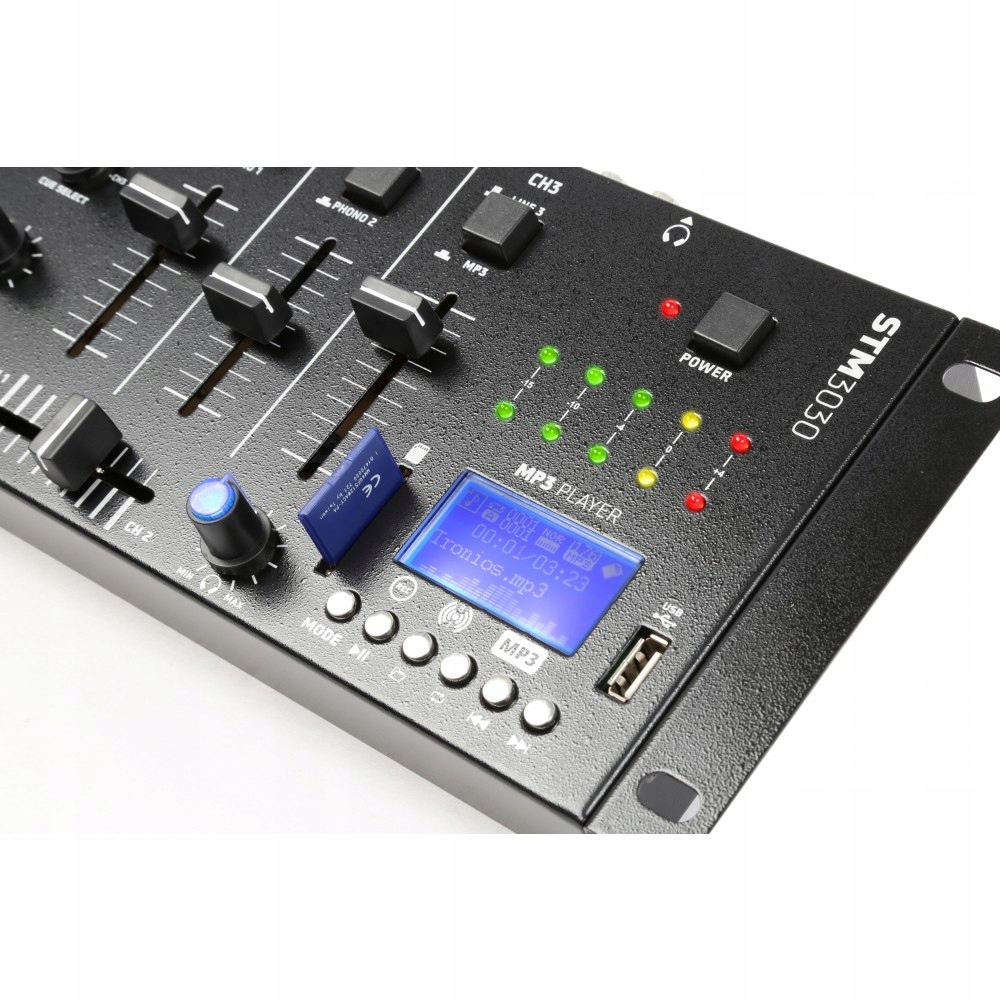 Четырехканальный микшер со встроенным модулем Bluetooth от Vexus. Устройство оснащено портом USB и устройством для чтения карт SD, что позволяет легко работать с файлами MP3. Кроме того, саундтрек можно записать на носитель благодаря функции записи. Также имеются 2 микрофонных входа, разделенных на левый и правый каналы с функцией Talkover. Удобство использования обеспечивается четким дисплеем. Благодаря небольшим габаритам транспортировка устройства не вызывает никаких проблем.