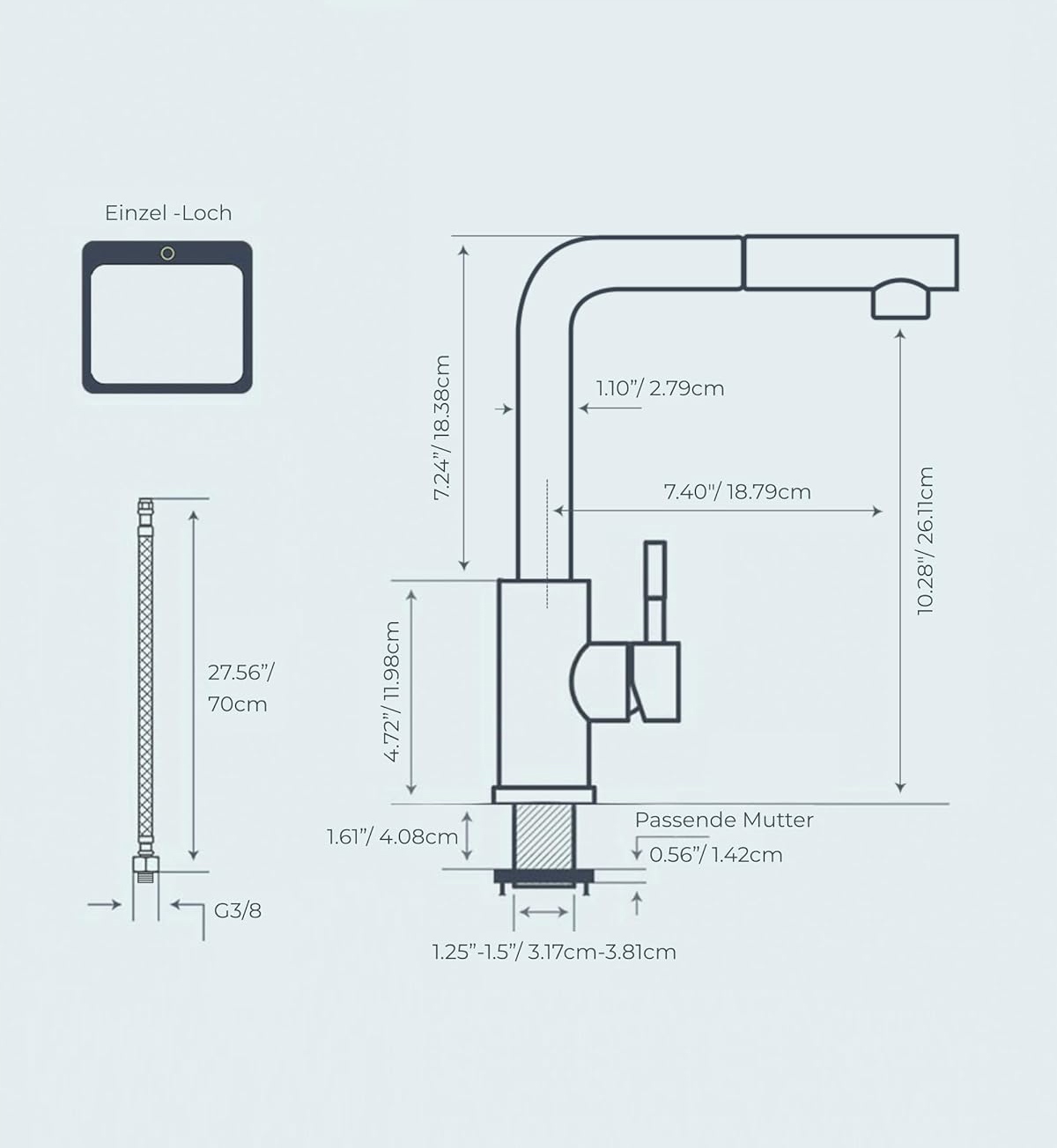 Гибкая выдвижная конструкция: гибкий шланг легко сворачивается с поворотным адаптером, обеспечивая расширенный диапазон движений, возможность сгибаться, перекручивать и протягивать руку вокруг раковины, а также удобство распылительной головки, которая полностью возвращается на место и безопасно.