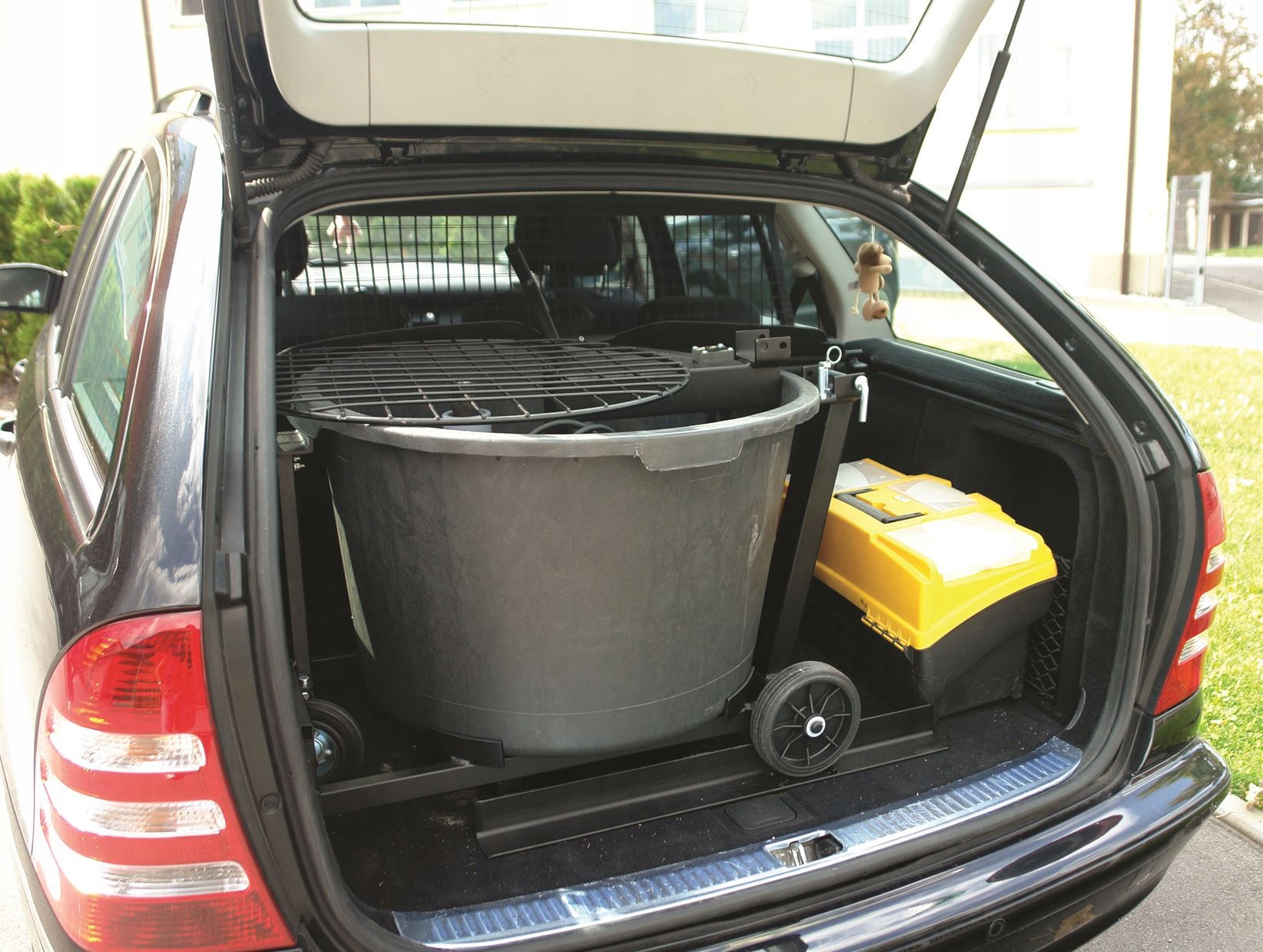 - Транспортная тележка с большими колесами и ручками для удобного перемещения по неровной строительной площадке.