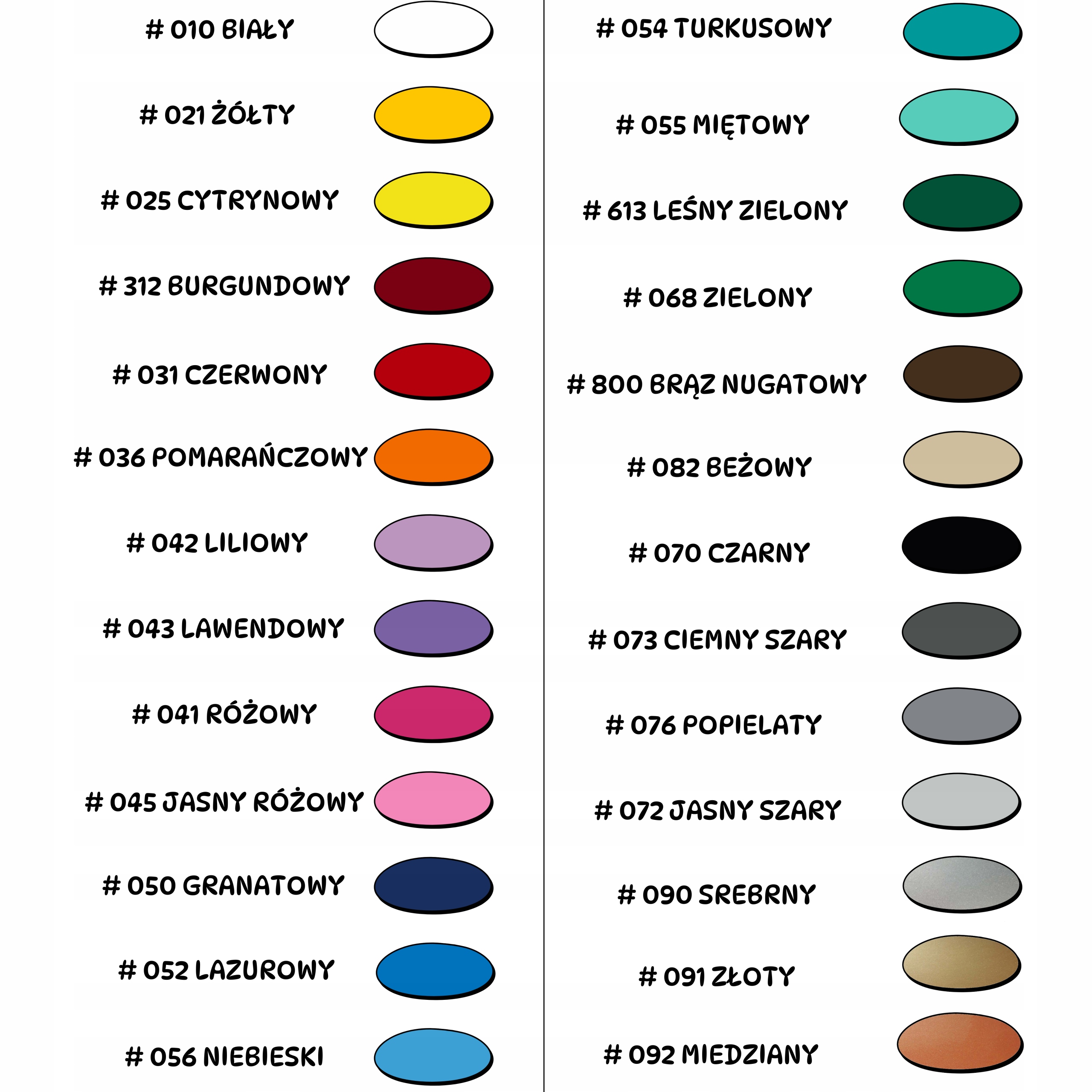 При выборе цвета следует учитывать, что цвета на разных мониторах могут немного отличаться от в действительности - это зависит от настройки дисплея. В нашем шаблоне есть 26 цветов, из которых мы можем подготовить вашу наклейку. Выберите один из доступных вариантов, обязательно предоставьте имя в примечаниях на заказ, например, "Color #070 Black"