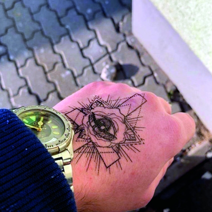 - Нанесение татуировки очень простое: просто нанесите ее на кожу, протрите влажным полотенцем или губкой, а затем аккуратно снимите бумага.