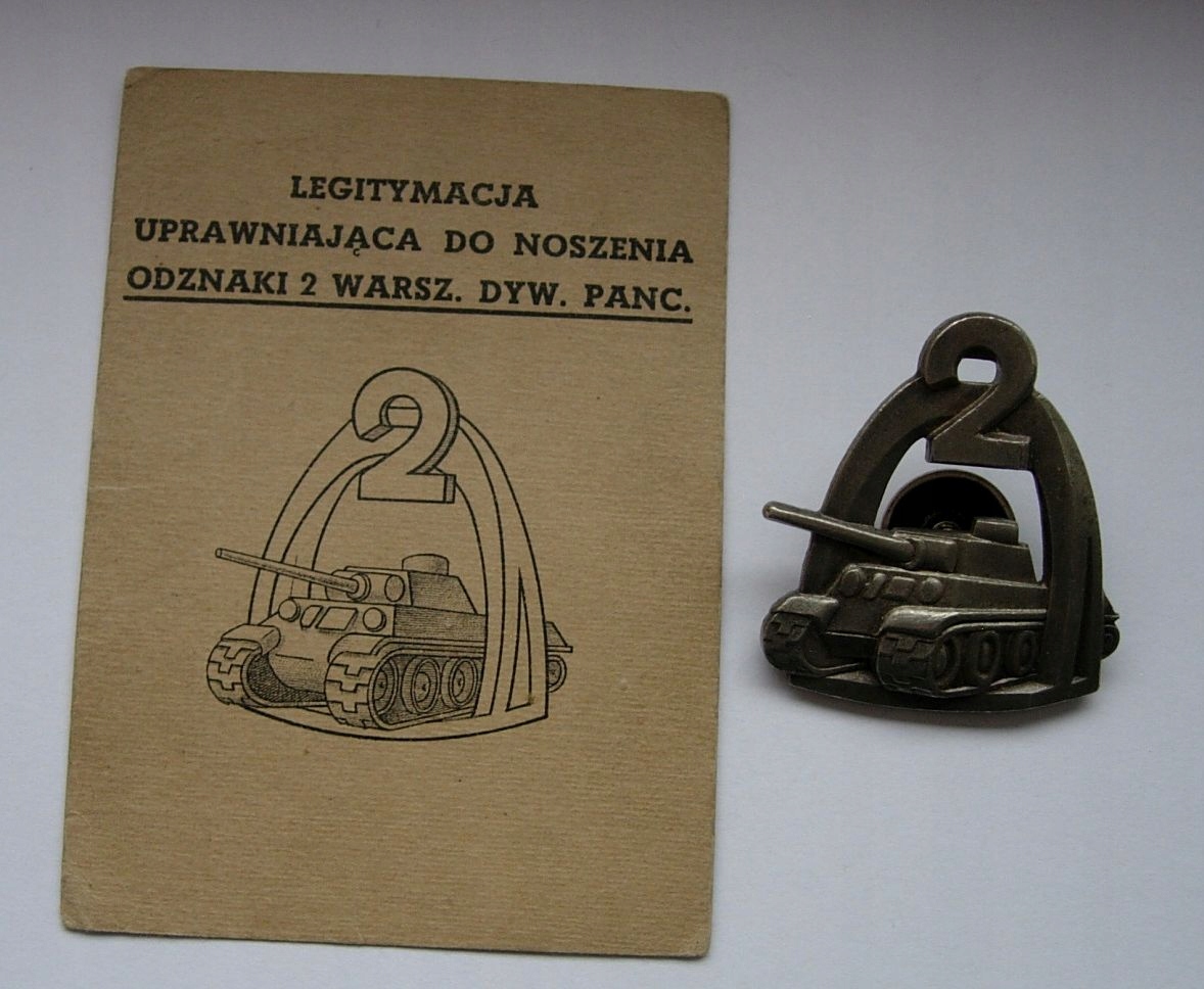 ЗНАЧОК 2-я ВАРШАВСКАЯ ТАНКОВАЯ БРИГАДА ПСЗнЗ + удостоверение личности 1946 г.