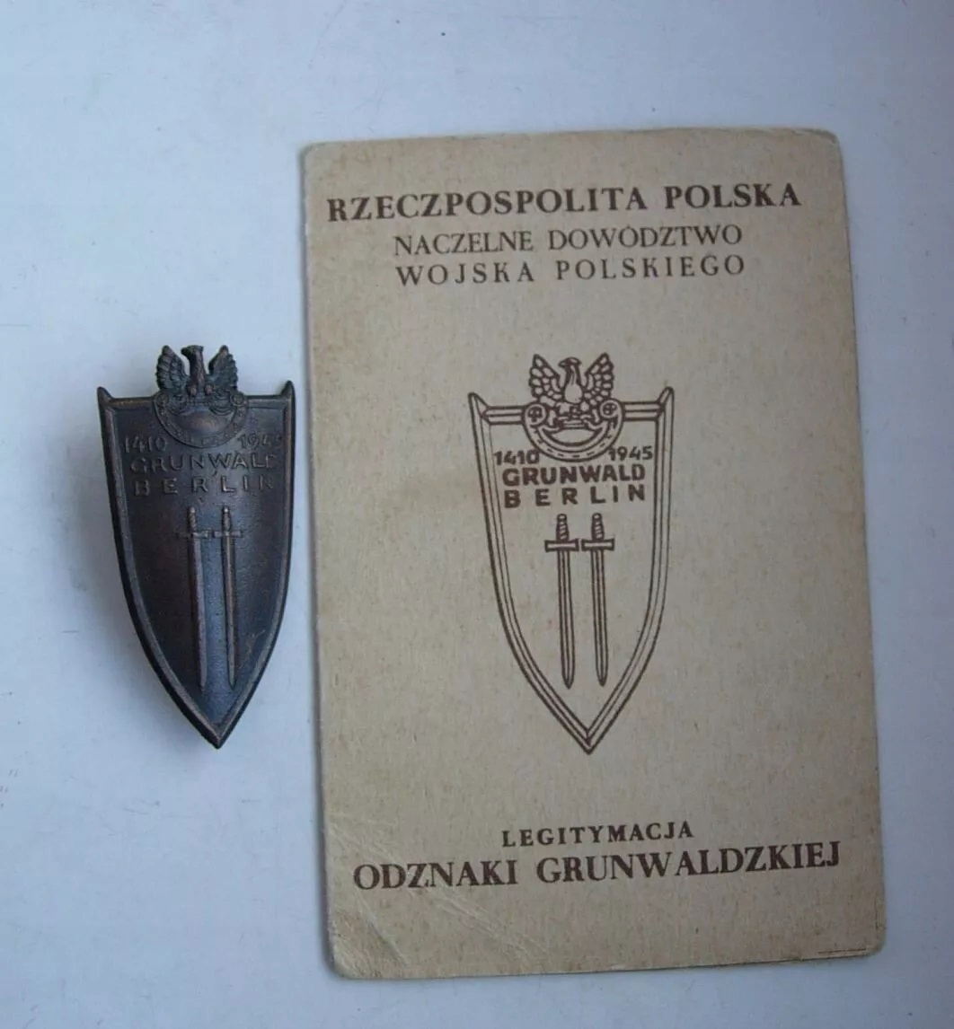 Интересный комплект Грюнвальдский значок + удостоверение личности, выданное подпоручику корпуса внутренней безопасности.