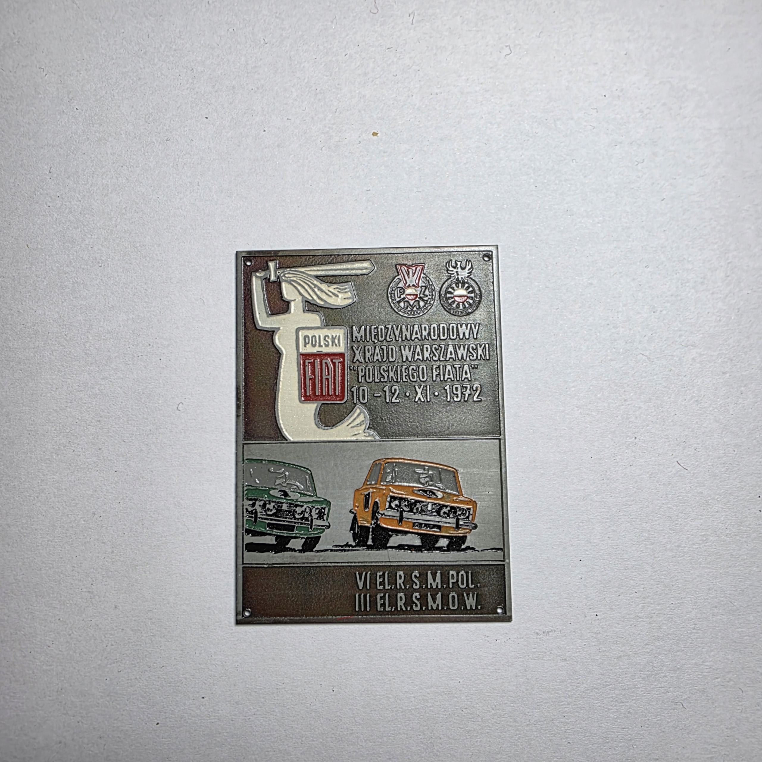 Международная табличка 10-го польского ралли Fiat в Варшаве, 1972 г.