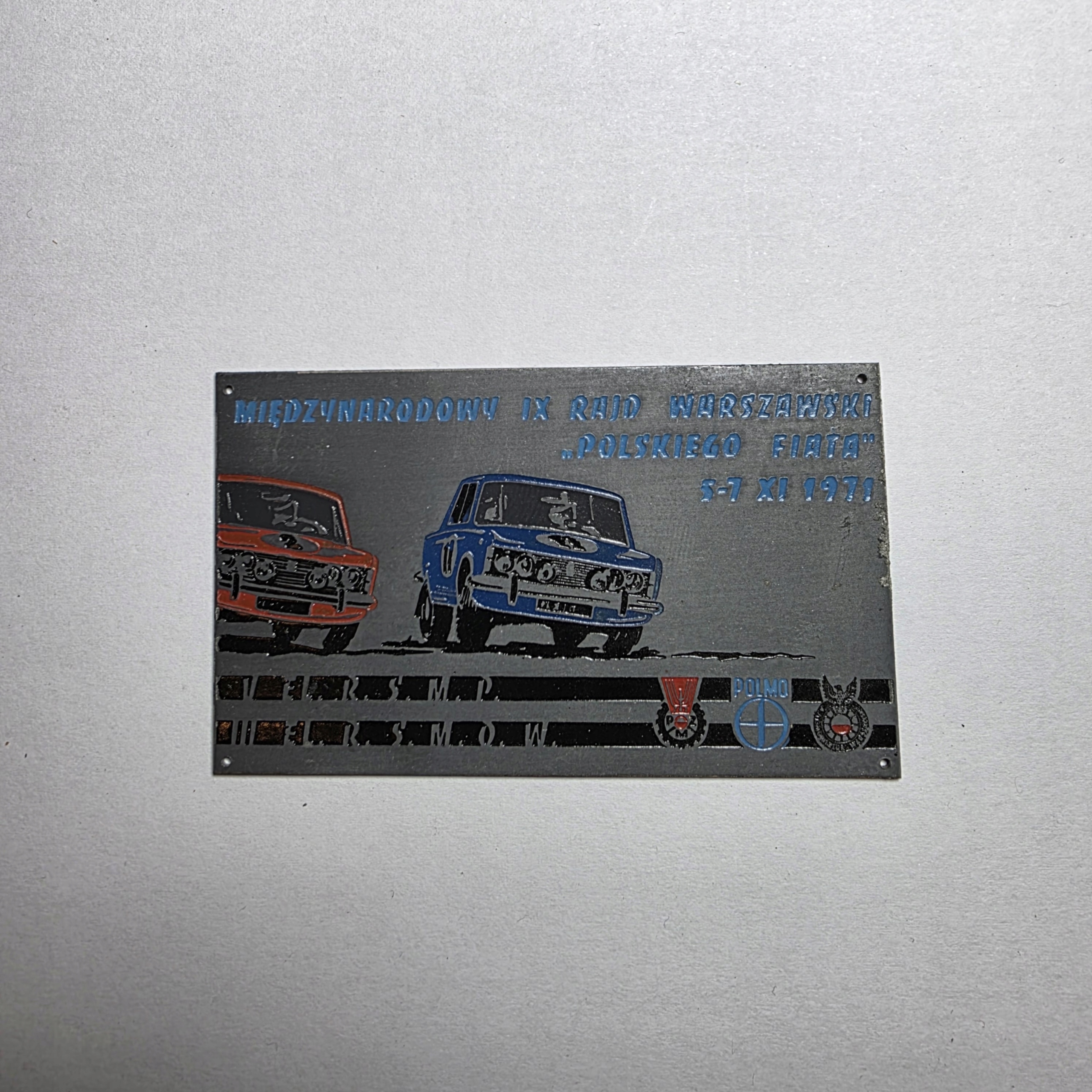 Мемориальная табличка 9-го Варшавского ралли польского Fiat 1971 года.