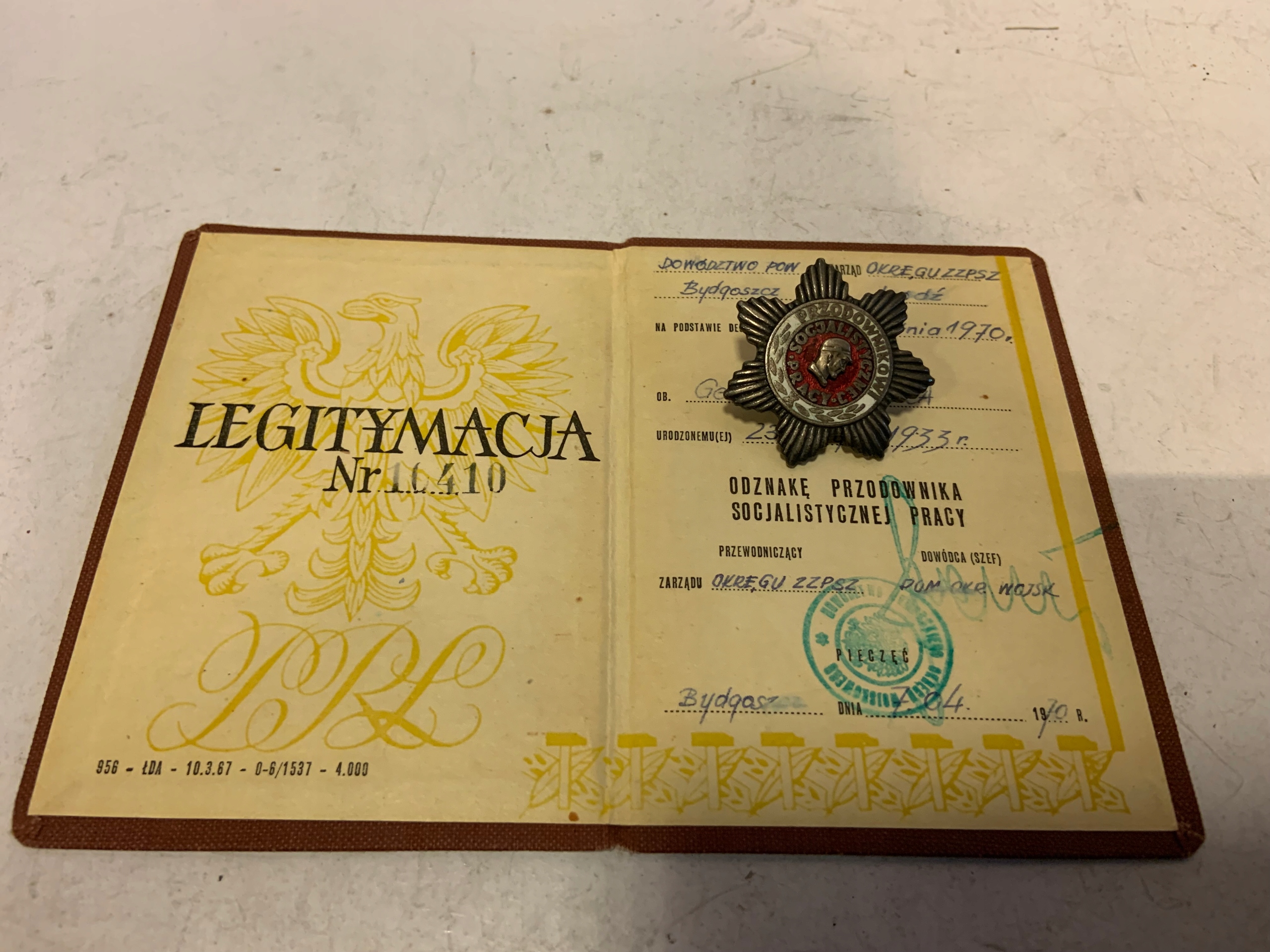 ЗНАЧОК СОЦІАЛІСТИЧНОЇ ПРАЦІ + посвідчення 1970р