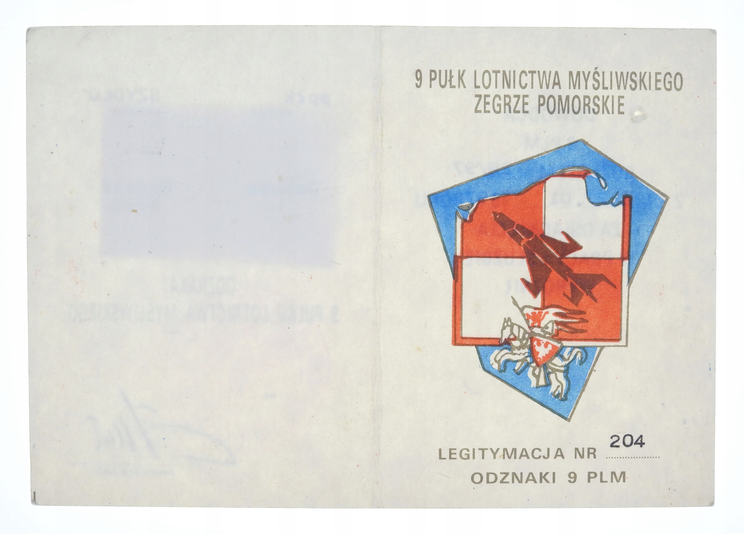 Знак 9-го истребительного авиационного полка с наградным билетом 1997 года - Зегже Поморское