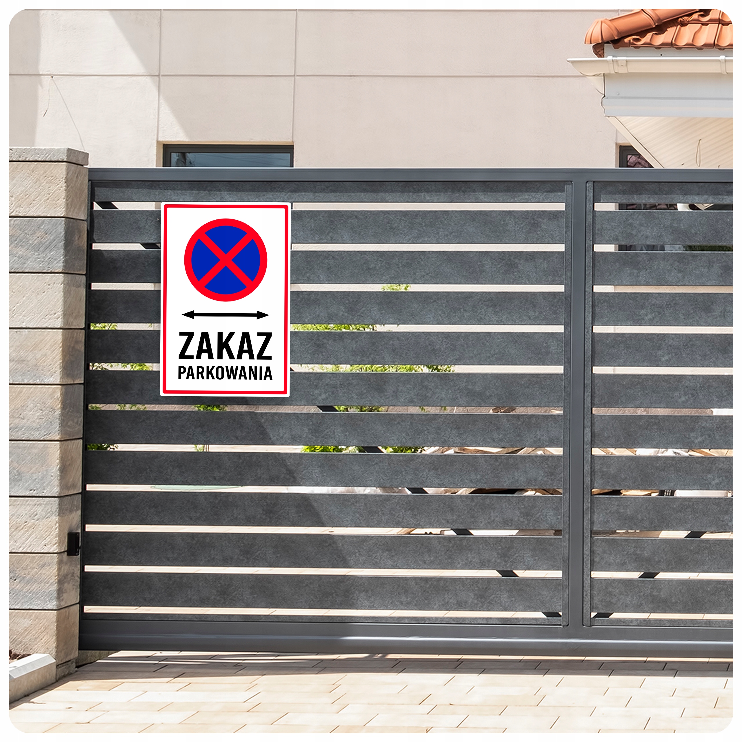 Знак идеально подходит для установки перед воротами гаража или другим местом, где парковка запрещена. Большой знак информирует третьих лиц на расстоянии, что оставлять автомобиль в этом месте запрещено.