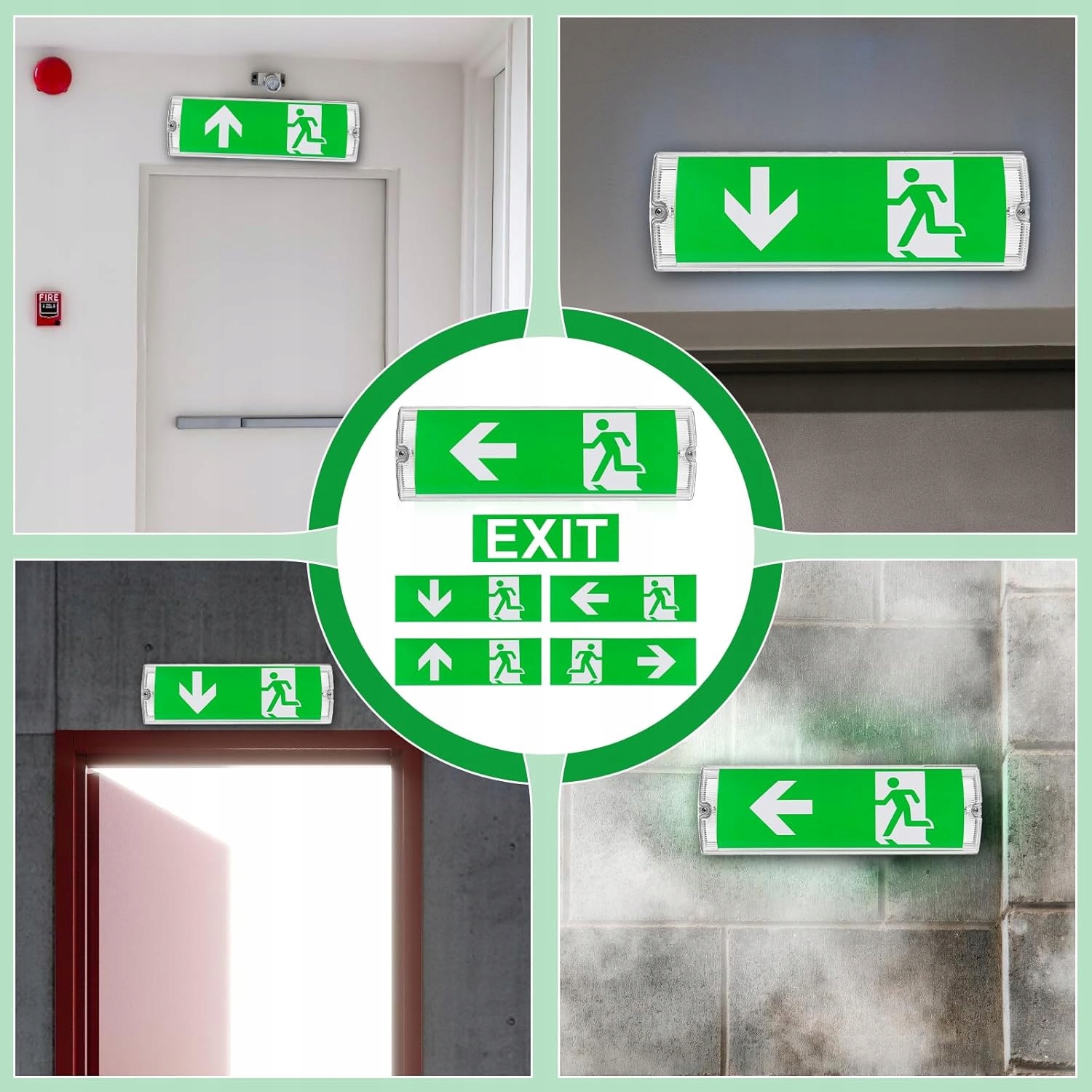 В комплекте с выходом и 4 направленными знаками: Независимо от того, является ли выход эвакуации справа, слева, прямо в будущем или под лампой, вы получите пиктограмму, подходящую для любой ситуации. Благодаря этому вы можете повесить светодиодную аварийную лампу в любом месте.