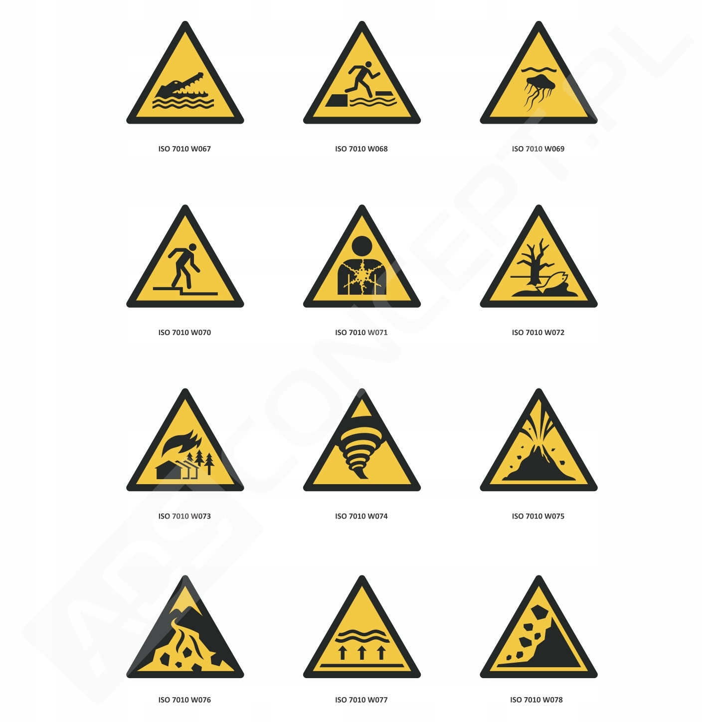 ЗНАКИ ЗДОРОВ'Я ТА БЕЗПЕКИ ПОПЕРЕДЖУВАЛЬНІ НАКЛЕЙКИ 5x5 см ПЛІВКА ISO 7010