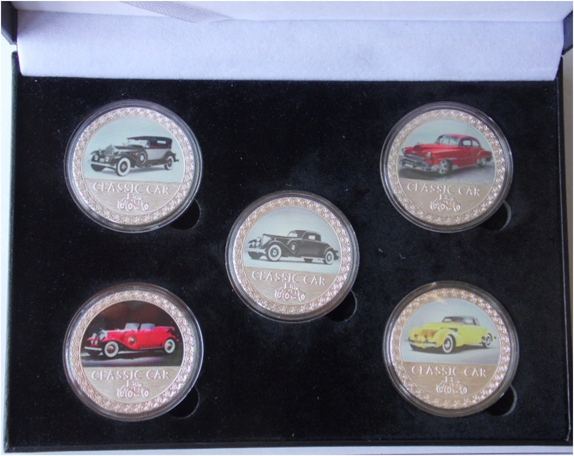 Знаменитые автомобили в мире - набор из 5 медалей в оригинальной коробке @@@@@@@@@@@@@@@@@@