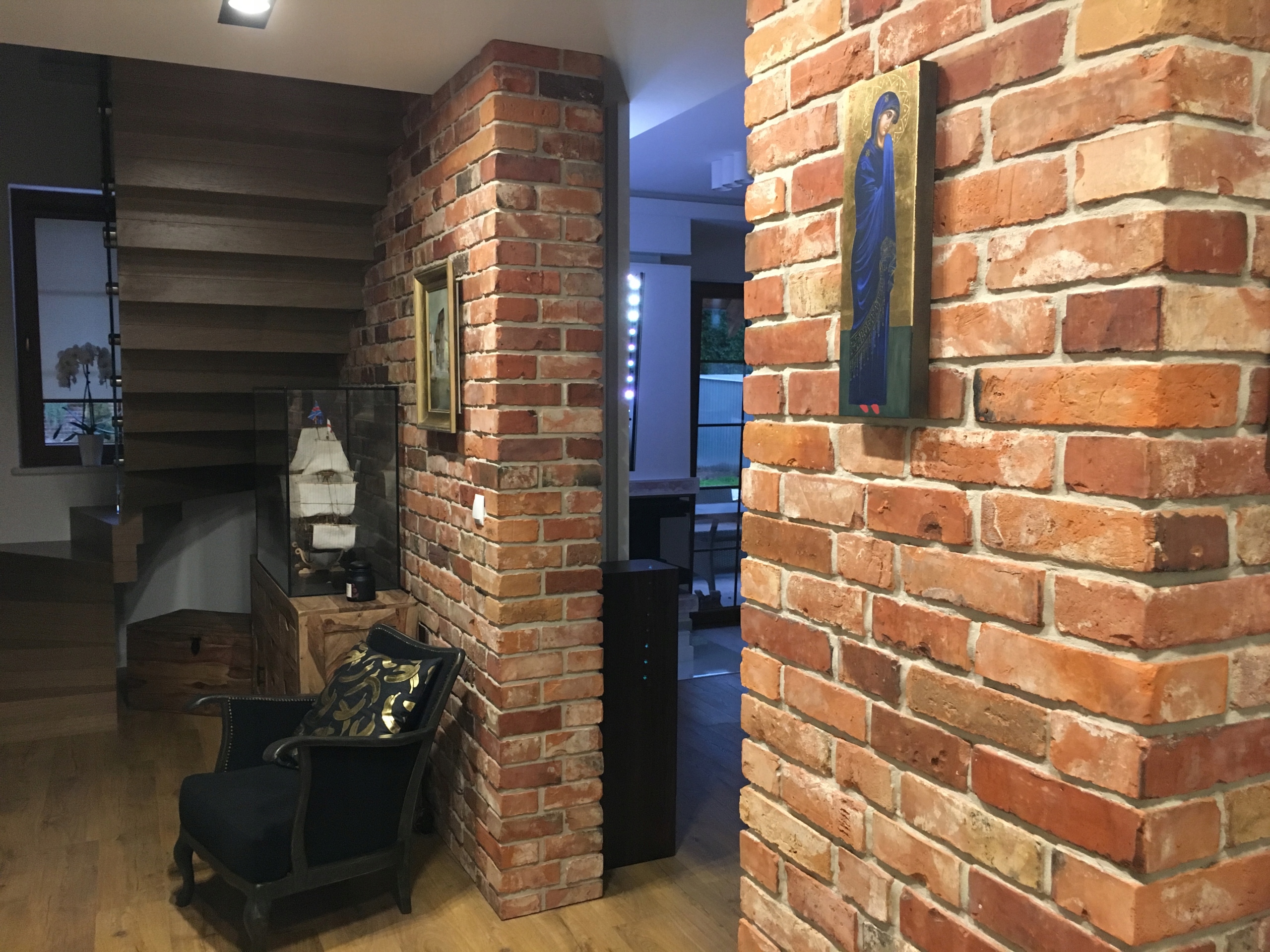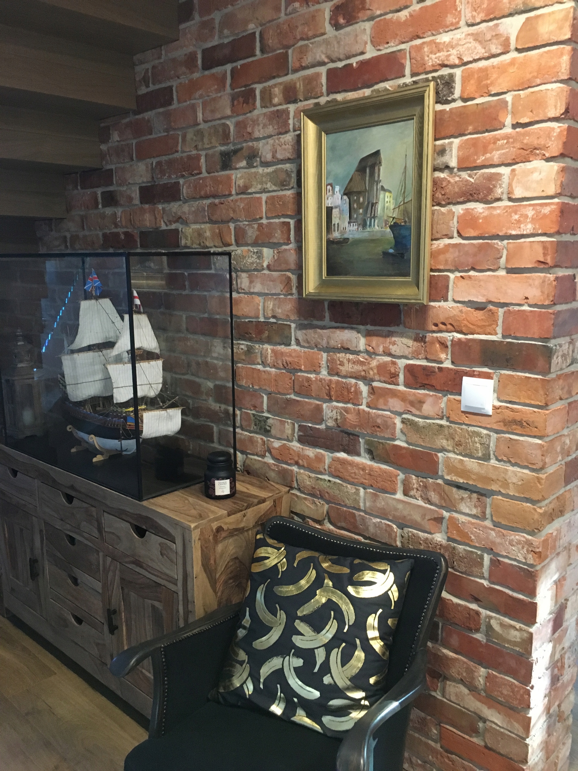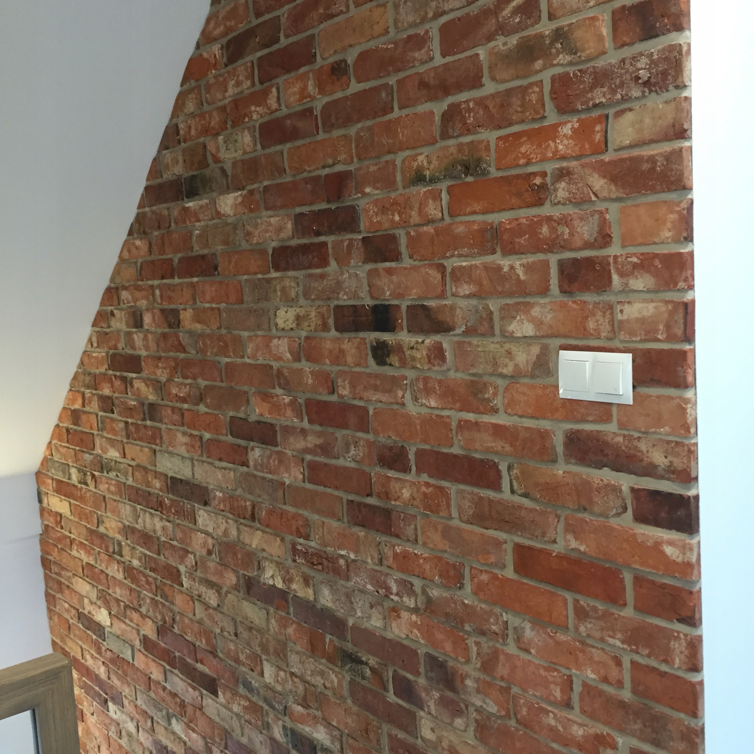Мы режем плитку только с лицевой стороны старого кирпича, поэтому она не требует ручной обработки и выглядит просто красиво.