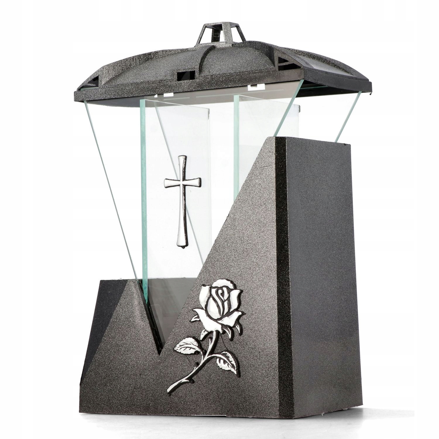 Znicz Glass Art 5 Треугольник Cross Silver Rose Modern Design 27 см.